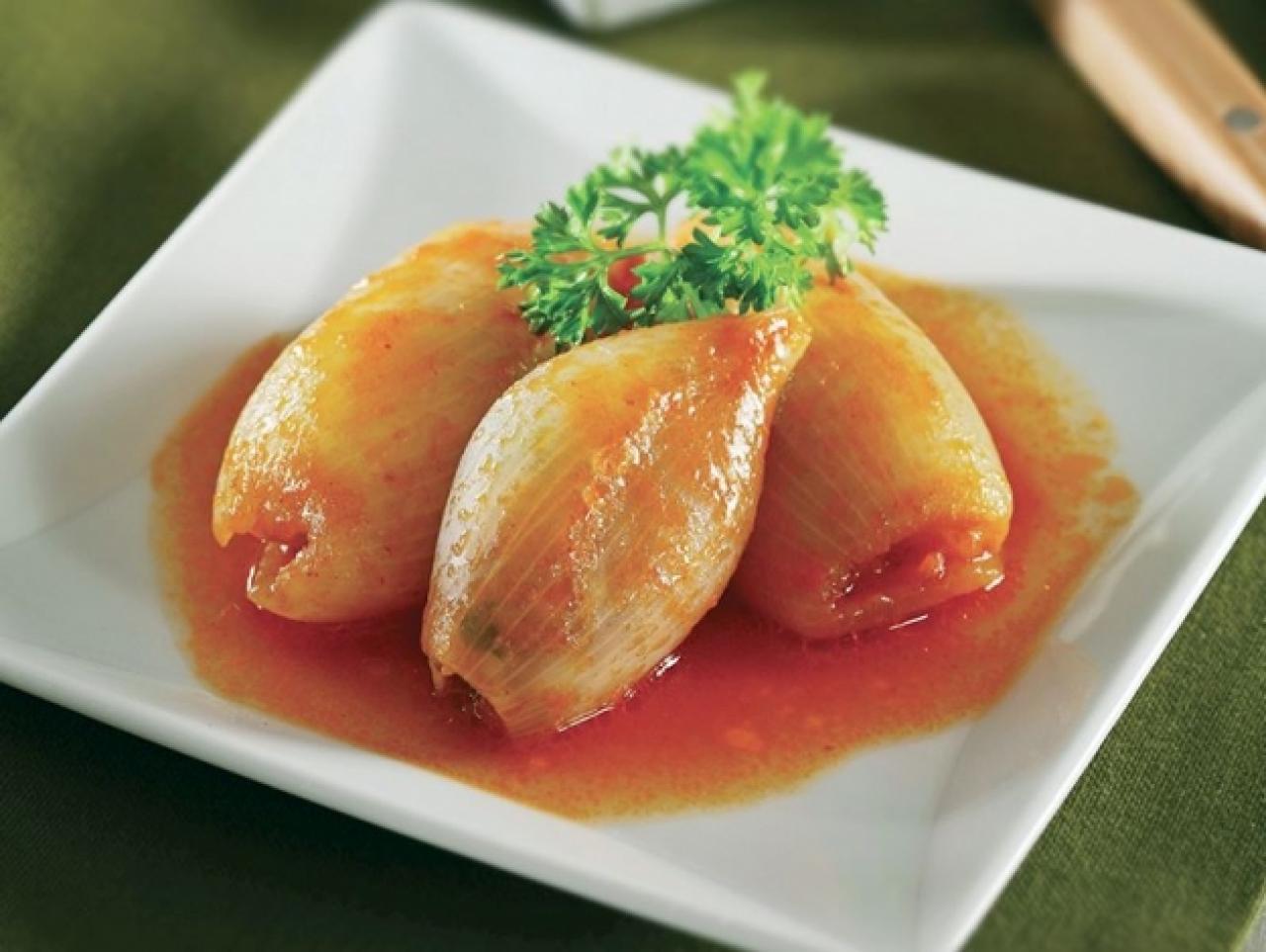 Pratik yemek tarifleri arasında özel bir yere sahip. Soğanların kabuklarını soyup boylamasına orta kısmına kadar kesin ve bir tencereye alıp üzerini geçecek kadar su ekleyin. Orta ateşte yumuşayıncaya kadar pişirin. Soğanları soğuk sudan geçirip yaprak yaprak ayırın.