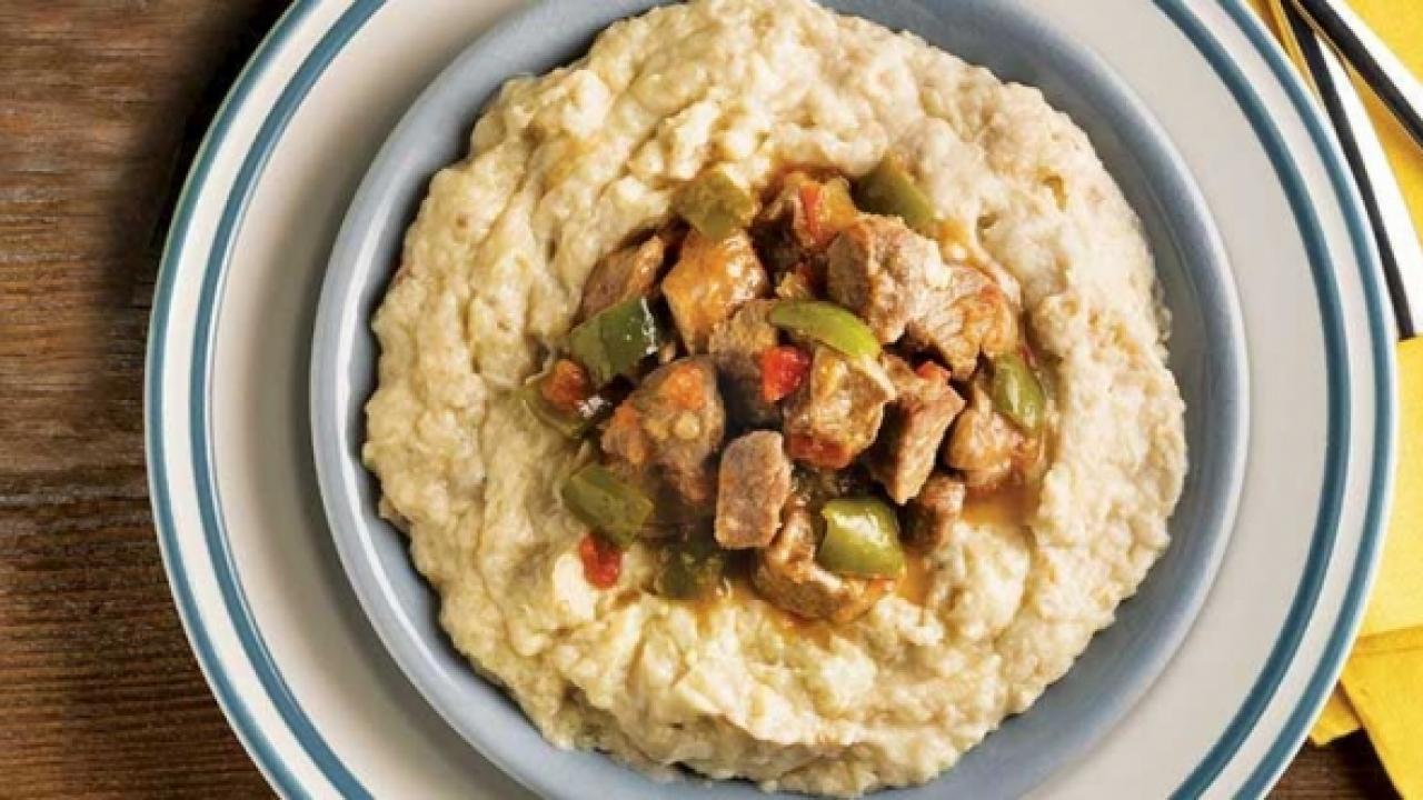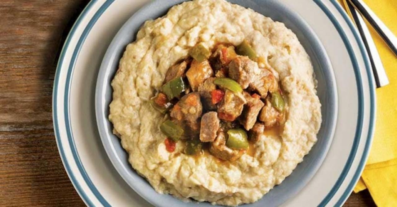 - Son olarak kenarda dinlenmeye bırakın. Servis tabağına önce beğendiyi, daha sonra etleri koyun.