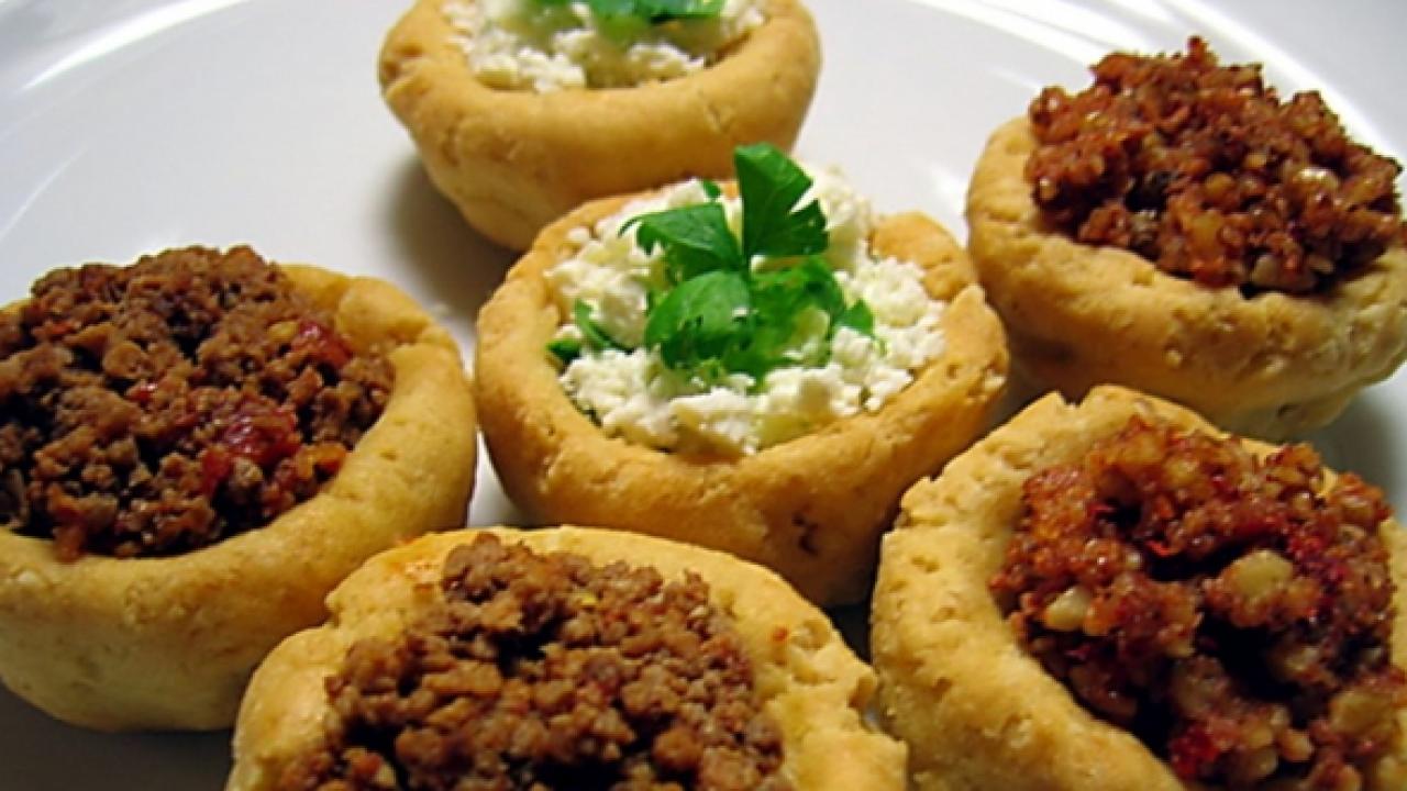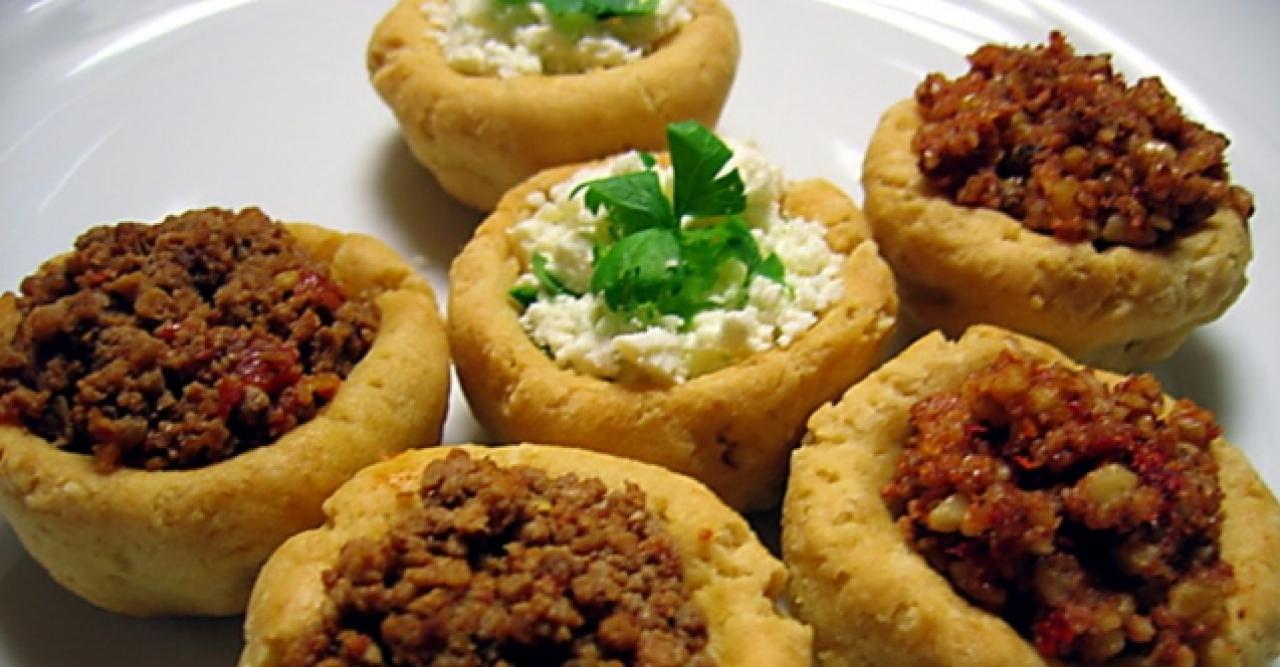 Öncelikle kıymalı harcı hazırlayarak başlayın. Bir tavada sıvı yağı kızdırın. Üzerine kıymayı ilave edin ve suyunu salıp çekene kadar kavurun. Ardından ince ince doğradığınız soğanları da üzerine ekleyip kavurmaya devam edin. En son tuz ve karabiber ile tatlandırıp kıymalı harcınızı ocaktan alın. Hamurunu hazırlamak için ise tereyağını bir tencerede eritin. Eriyen tereyağın üzerine unu ilave edip yaklaşık 4 dakika kavurun. Kavrulan una suyu azar azar ekleyip yedirin. Hamurunuz toparlandığında ocaktan alın. Ardından yumurtaları tek tek ekleyerek hamura güzelce yedirin. Hamurunuzdan mandalina büyüklüğünde parçalar koparın ve yuvarlayıp tepsiye dizin. Tepsideki yuvarlak hamurun üzerine parmağınızla batırarak küçük yuvarlaklar açın. Önceden ısıtılmış 180 derece fırında yaklaşık 30 dakika pişirin. Fırından çıkardıktan sonra yuvarlak hamurların bazılarına kıymalı harç bazılarına da lor peynirini doldurun. Afiyet olsun.