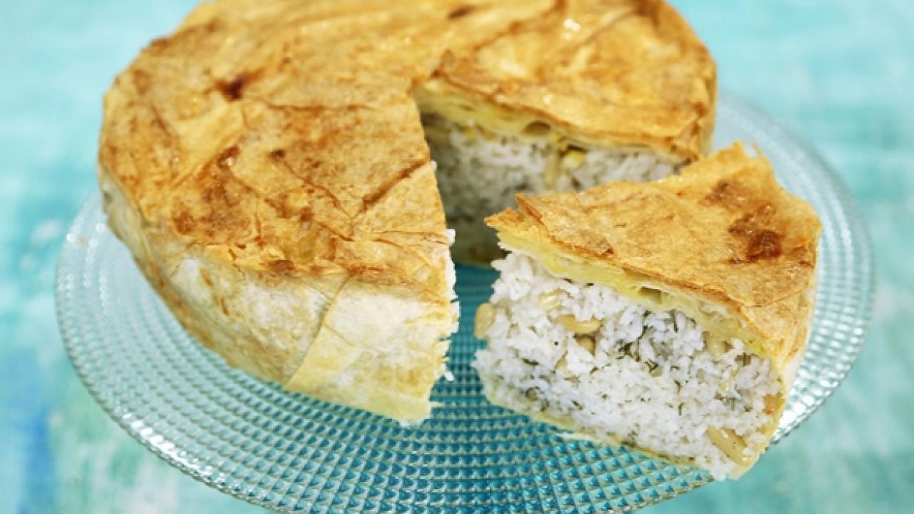 Soğuyan pilava dereotu, yemeklik fıstıkları, limon kabuklarını ve karabiber ilave edip karıştırın. Yufkaları yerleştirdiğiniz kalıba pilavı koyup taşan yufka kısımları ile kapatın.