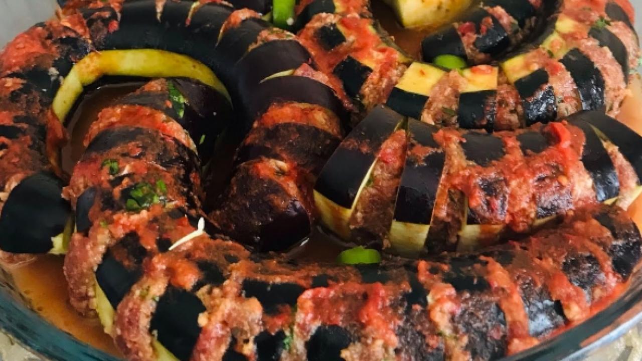 - Patlıcanlar alacalı soyulur. Kopmadan dilimlenir.