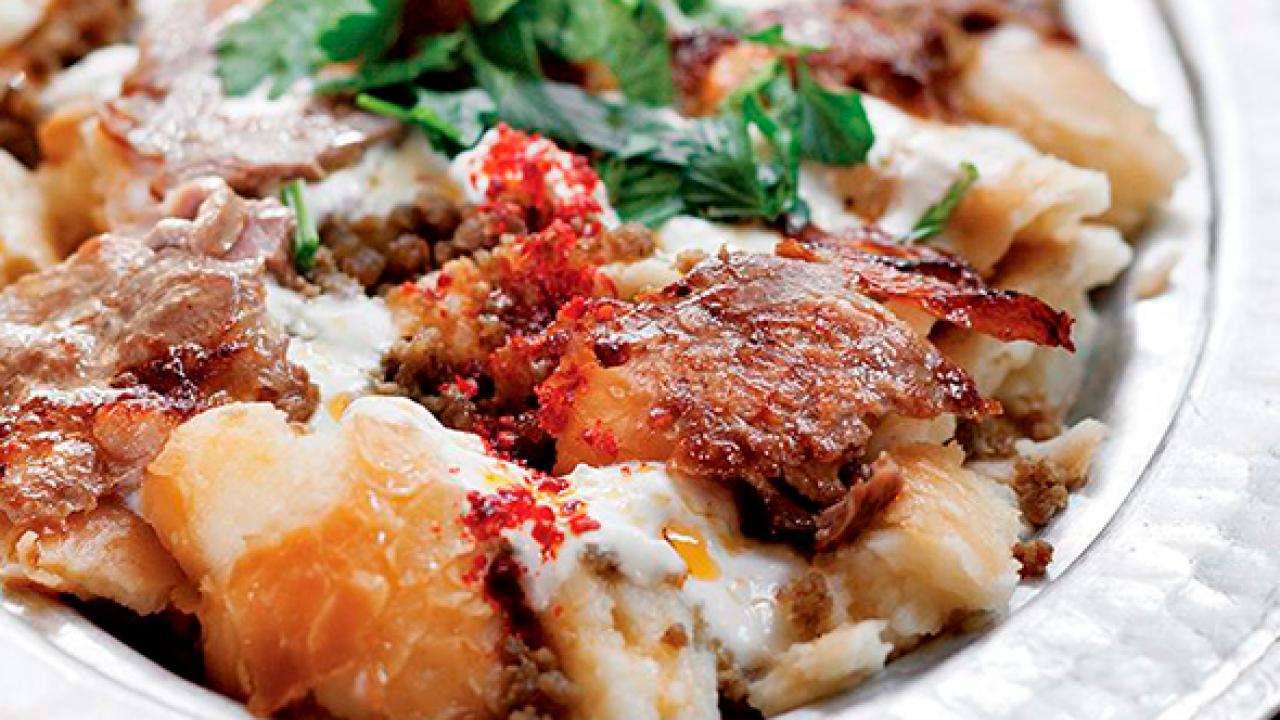 - Daha sonra sırası ile sarımsaklı yoğurdu, baharatlarla kavrulmuş kıymanızı ve tereyağını döküp bekletmeden servis yapın.