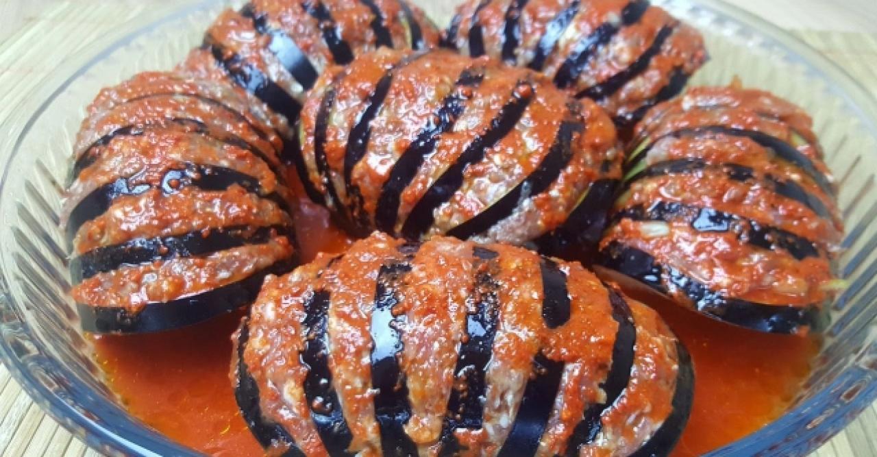 - Isıtılmış 175 dereceli fırında, patlıcanlar ve köfteler pişene kadar pişirilir.