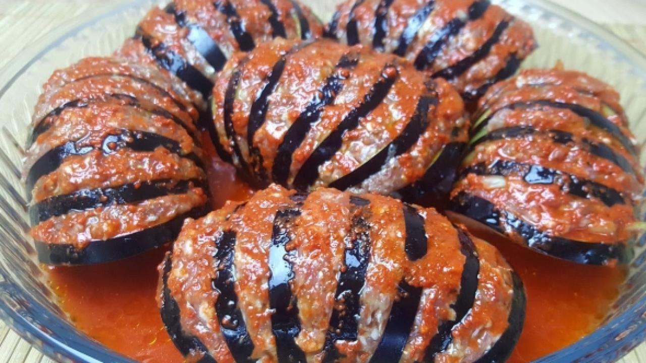 - Patlıcanların suyu süzülür, tatlı çatalı yardımıyla aralarına azar azar harçtan doldurulur. Fazlalığını, çatalın arkasıyla sıyırabilirsiniz.