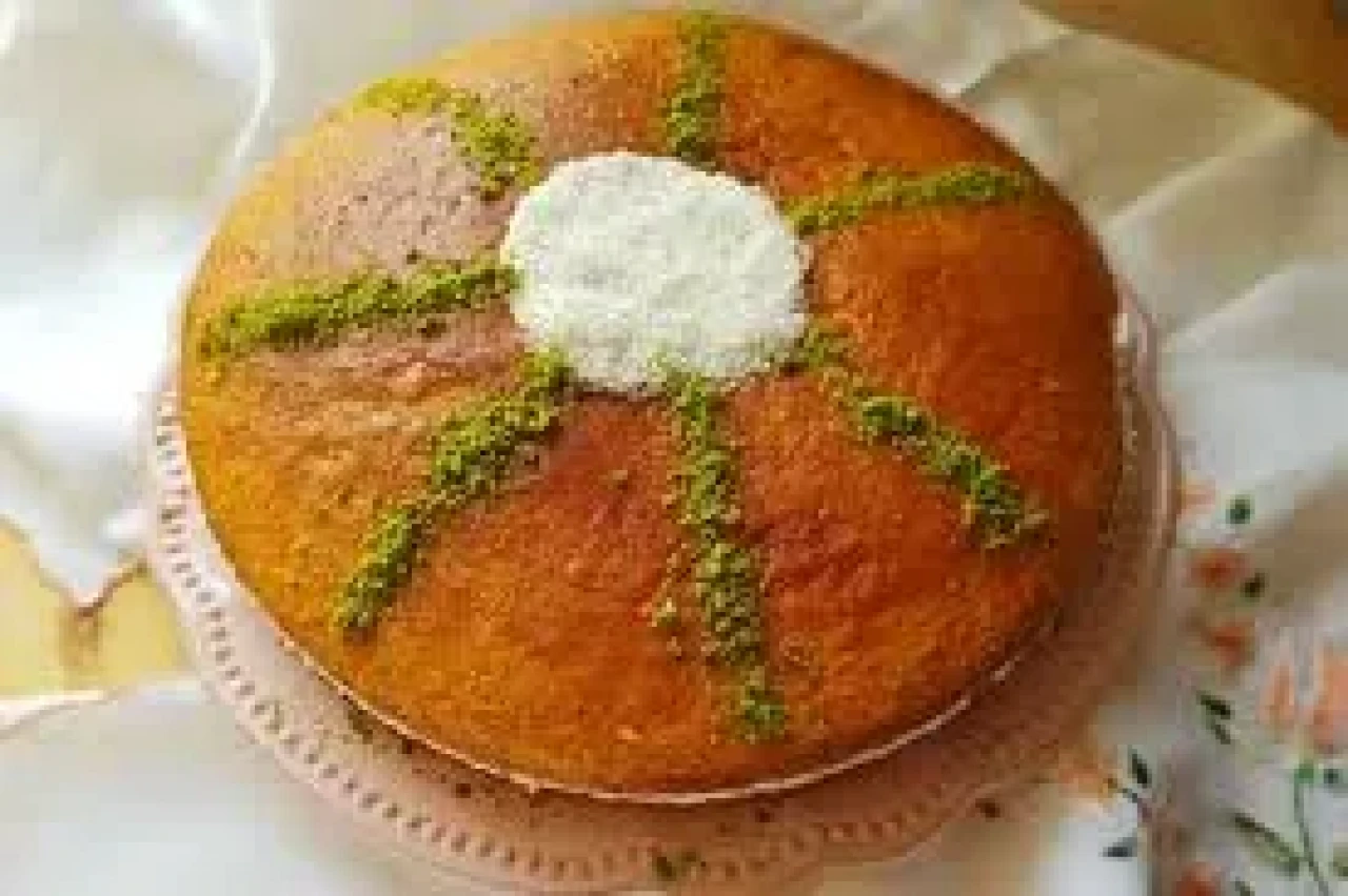 4. Tatlıyı Birleştirme Pışirilen keki fırından çıkarın ve soğumaya bırakın. Kek tamamen soğuduğunda ortadan ikiye kesin. Kekin her iki parçasını da şerbetle güzelce ıslatın. Alt tabana kremayı sürün ve üzerine nar tanelerini serpiştirin. Üst keki kapatın ve tatlıyı bikaç saat büzdolabında dinlendirin. Üzerini Hindistan cevizi ve toz Antep fıstığı ile süsleyerek servis edin.