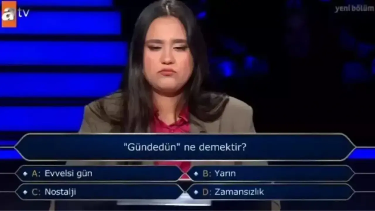 ATV ekranlarında izleyicileri ekran başına kilitleyen Kim Milyoner Olmak İster programında dikkat çekici sorular yer almaya devam ediyor. Son bölümlerde yarışmacılara yöneltilen sorulardan biri, “Gündedün ne demektir?” sorusuydu. İzleyiciler ve yarışmacılar, kelimenin anlamını bulmakta zorlanırken, doğru yanıtı öğrenmek için internet üzerinden araştırma yaptı. İşte gündedün kelimesinin anlamı ve bu ilginç sorunun detayları.