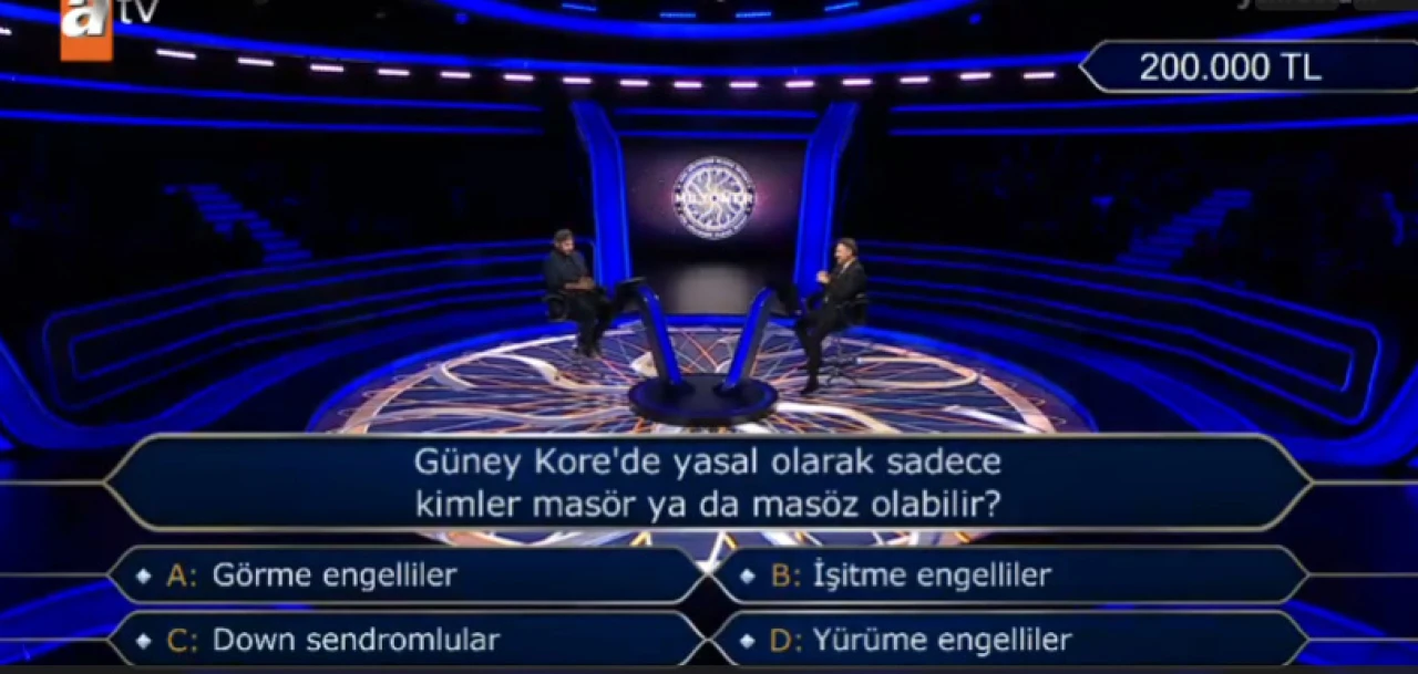 ATV ekranlarının ilgiyle takip edilen yarışma programı Kim Milyoner Olmak İster, izleyicileri ekran başına kilitlemeye devam ediyor. 200.000 TL değerindeki bu soru, yarışmacıyı zorladığı kadar izleyenlerde de merak uyandırdı: "Güney Kore'de yasal olarak sadece kimler masör ya da masöz olabilir?" İşte bu dikkat çeken sorunun yanıtı ve arkasındaki ilginç detaylar…