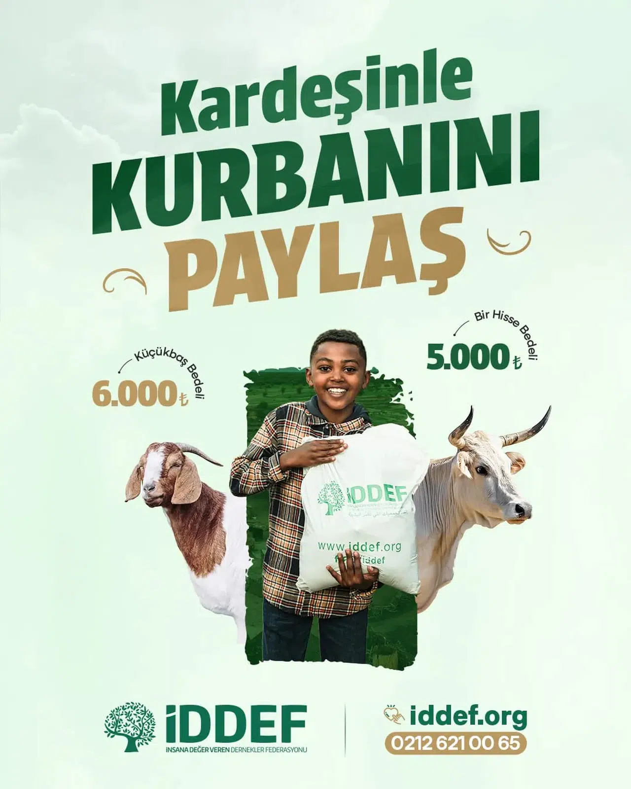 2026 yılı organizasyonu kapsamında belirlenen bağış kalemleri "Kardeşinle Kurbanını Paylaş" sloganı altında kamuoyuna açıklandı. İDDEF yönetimi tarafından paylaşılan verilere göre, yurtdışı kurbanlık bedelleri büyükbaş hisse için 5.000 TL, küçükbaş kurbanlık için ise 6.000 TL olarak tayin edildi.