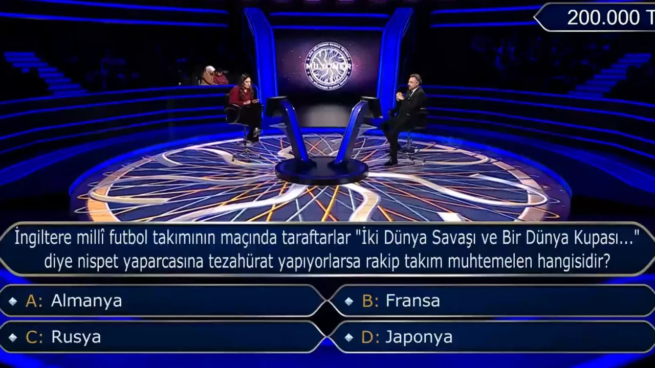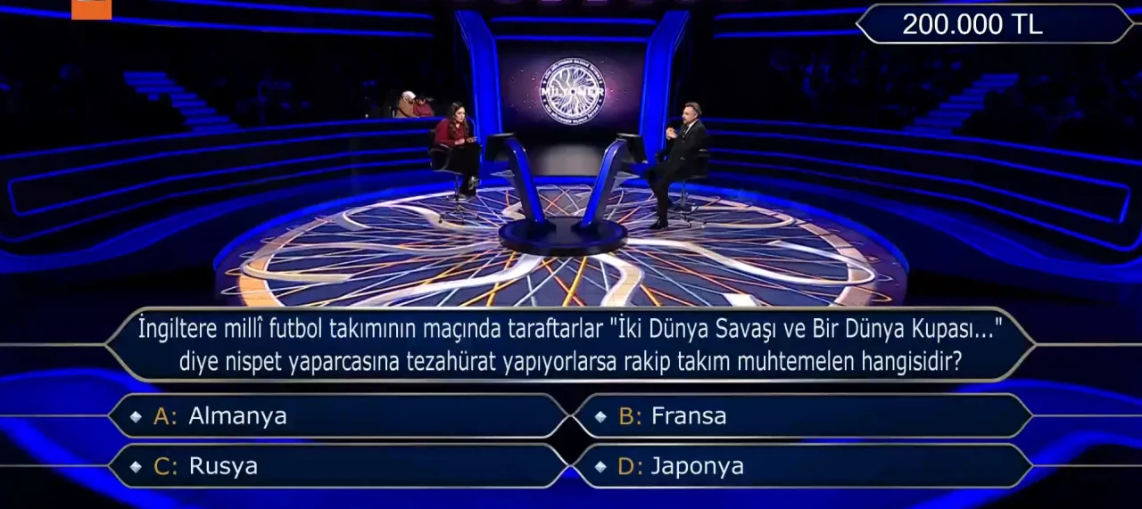 İngiltere millî futbol takımının maçında taraftarlar “İki Dünya Savaşı ve Bir Dünya Kupası...” diye nispet yaparcasına tezahürat yapıyorlarsa rakip takım muhtemelen hangisidir?