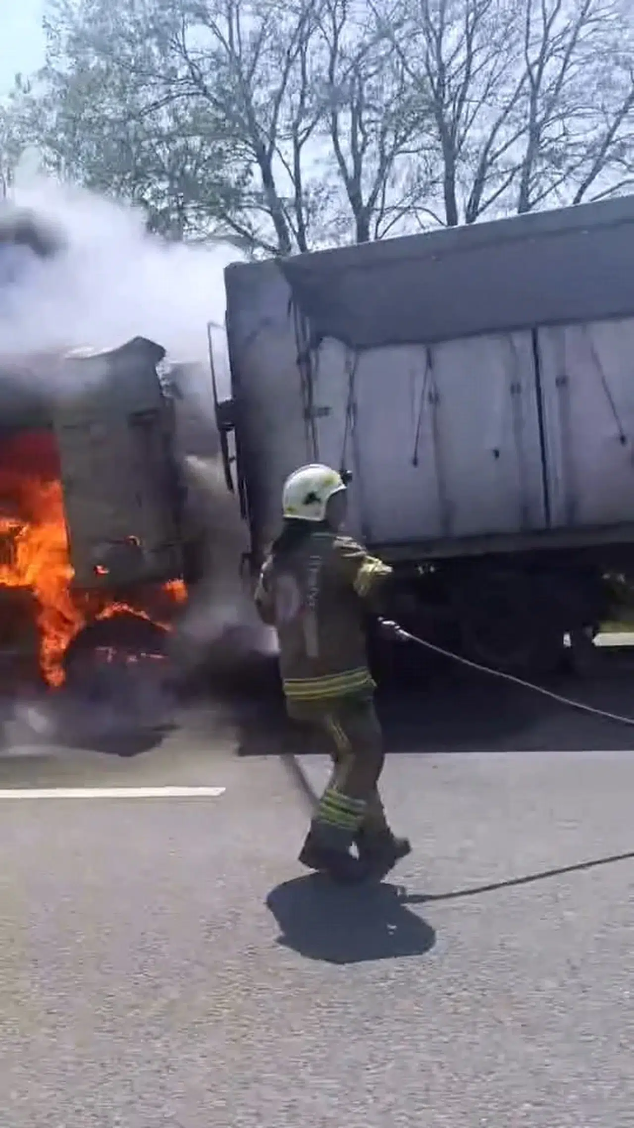 Aracındaki arızayı fark eden sürücü Mehmet Ö., trafiği tehlikeye atmamak adına tırı yol kenarına çekerek güvenli bir noktaya park etti. Sürücünün durumu vakit kaybetmeden itfaiye ekiplerine bildirmesiyle bölgeye çok sayıda ekip sevk edildi.
