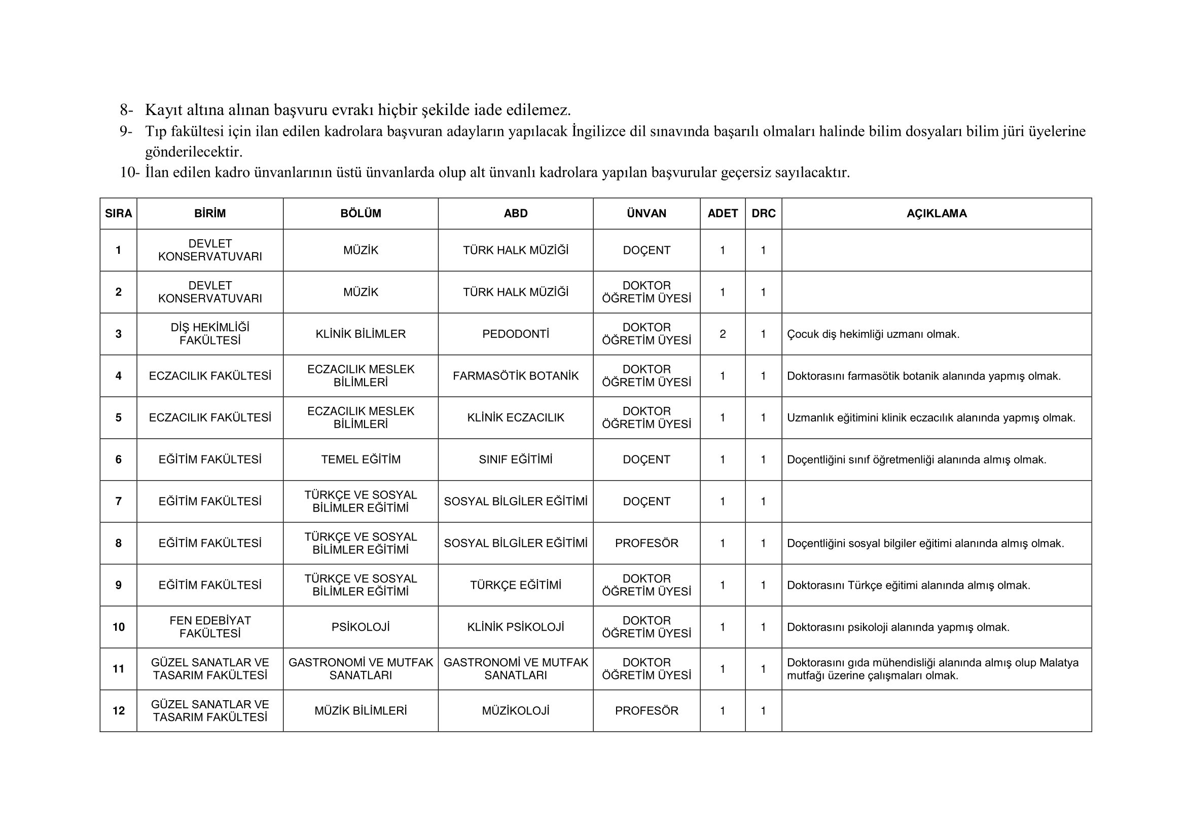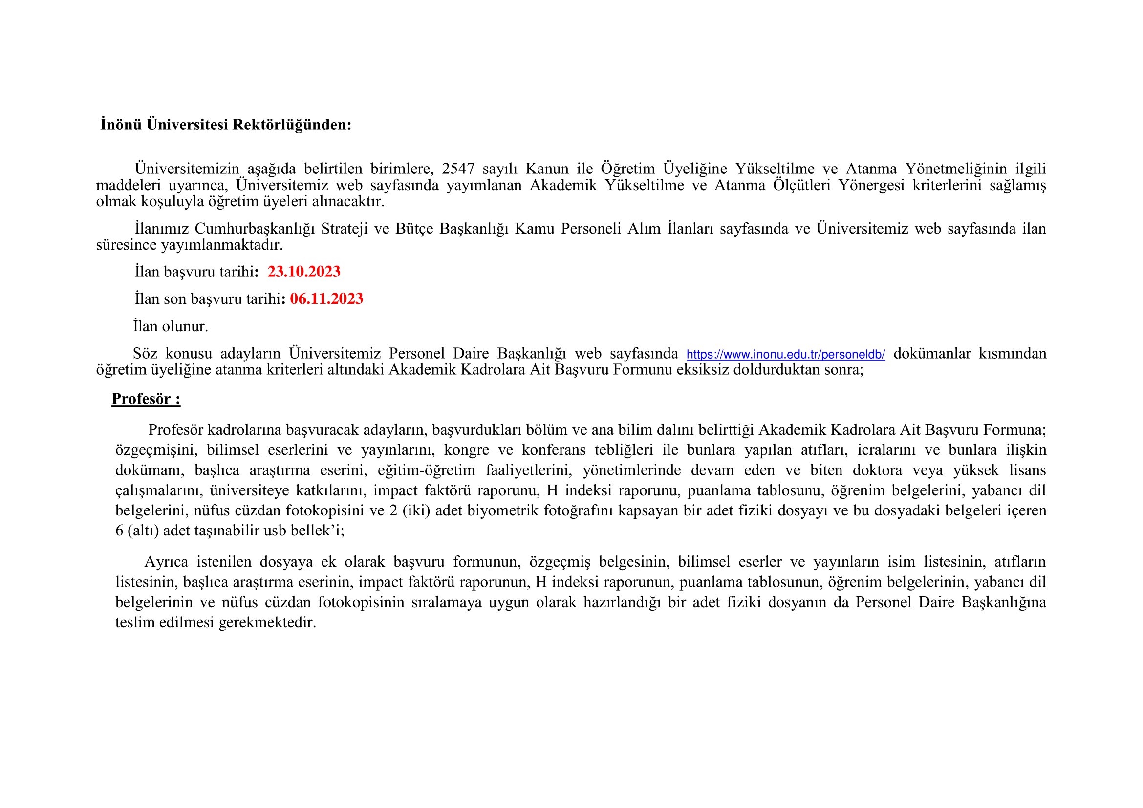 İnönü Üniversitesi 53 öğretim üyesi alacak. Başvurular 23 Ekim - 6 Kasım tarihlerinde gerçekleşecek.