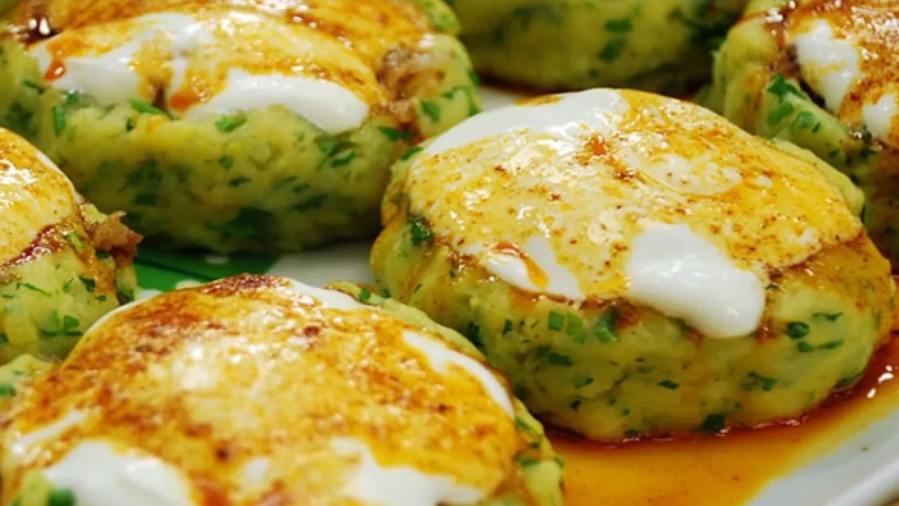 - Patateslerin içini yoğurt ile doldurun.
