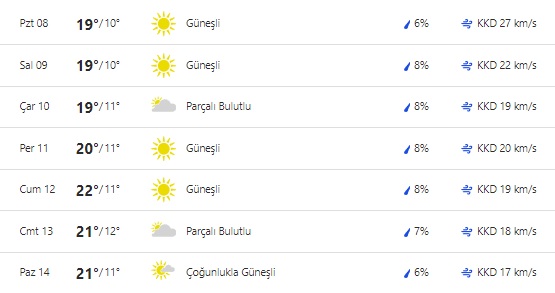 08 Nisan 2024 Pazartesi güneşli 19/10