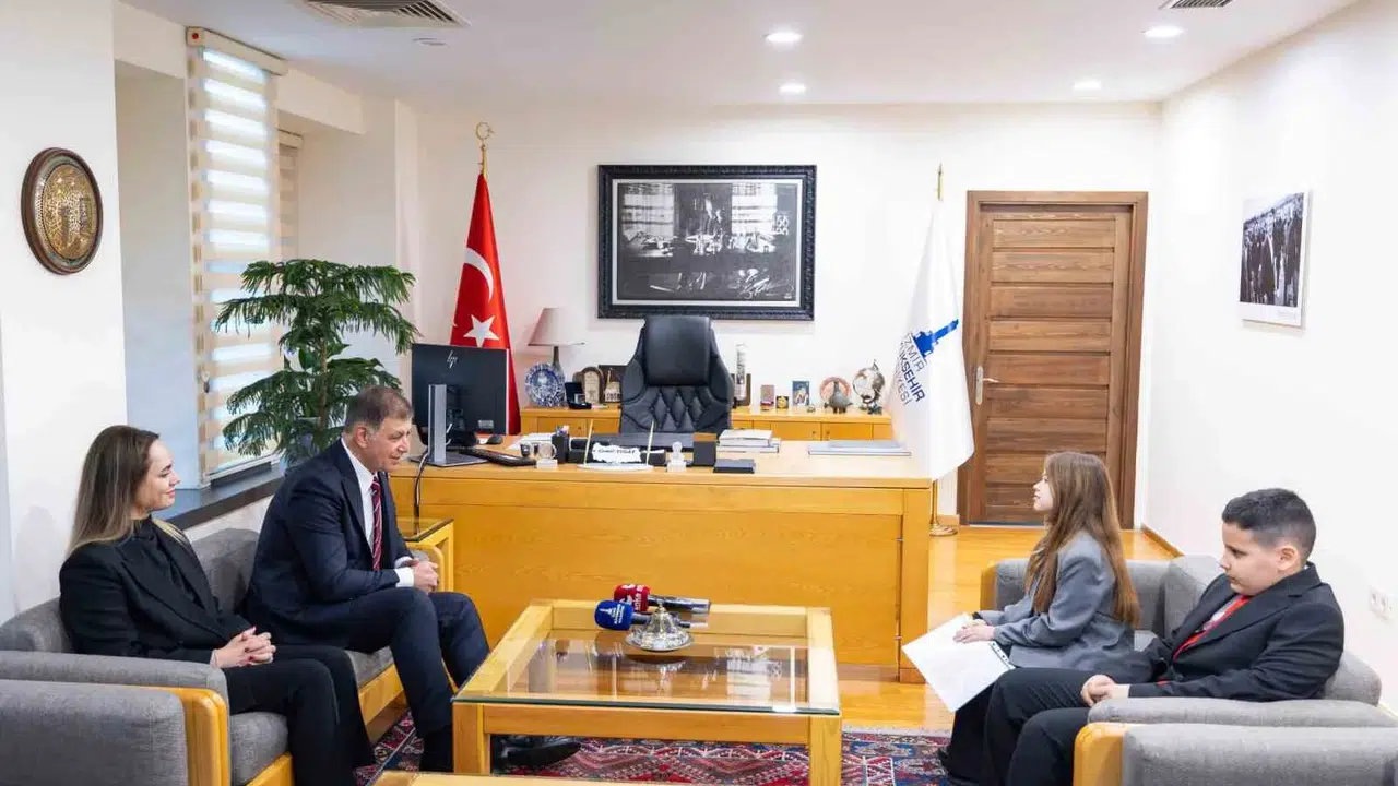 23 Nisan coşkusunu makamında ağırladığı öğrencilerle paylaşan İzmir Büyükşehir Belediye Başkanı Dr. Cemil Tugay, koltuğunu geleceğin emanetçilerine bırakarak çocukların hayallerine kulak verdi.