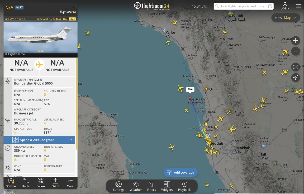 Uçak takip uygulamalarında şu an Suudi Arabistan’ın kuzey açıklarında görünen jetin, programlandığı şekilde 21:30’da İstanbul’a inmesi bekleniyor.
