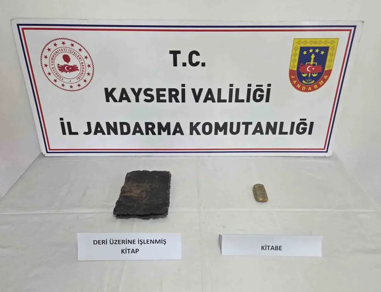 Melikgazi sınırları içerisinde gerçekleştirilen operasyonda, A.T. ve M.T. isimli şahısların üzerinde ve kullandıkları araçta detaylı bir arama yapıldı. Yapılan kontrollerde, deri üzerine özenle işlenmiş bir adet el yazması tarihi kitap ile bir adet kitabe ele geçirildi.