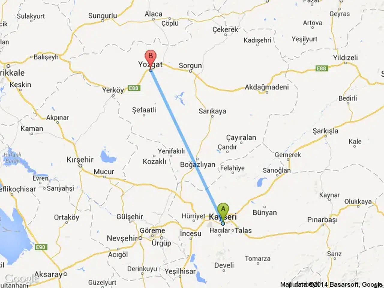 En sık tercih edilen rota genellikle Kayseri – Boğazlıyan – Sorgun – Yozgat güzergâhıdır.