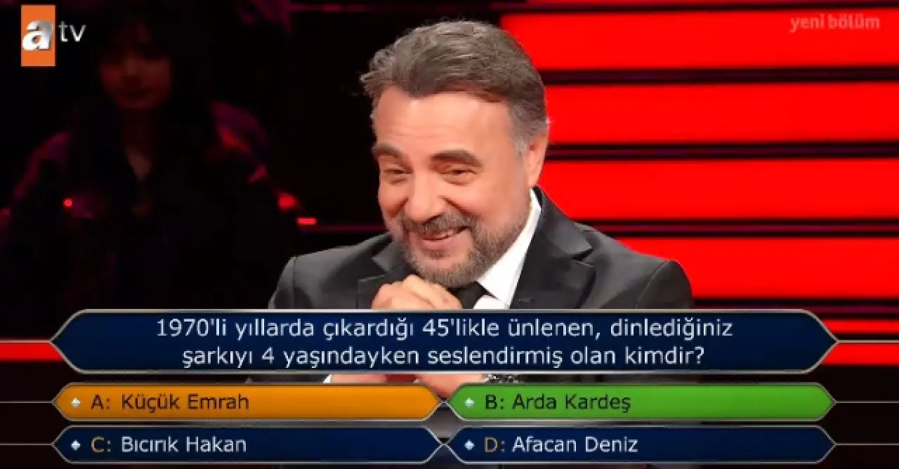 Kim Milyoner Olmak İster yarışmasında sorulan bu tarz sorular, hem yarışmacıların genel kültürünü test ederken hem de izleyicilere keyifli bir nostalji yaşatmayı amaçlıyor. 1970’li yıllara ait sorular, eski dönem müziklerine olan ilgiyi artırırken, çocuk sanatçılar hakkındaki anıları da tazeliyor. Arda Kardeş’in 4 yaşında müzik piyasasında şöhreti yakalaması, izleyicilerin ilgisini çekmeyi başardı.