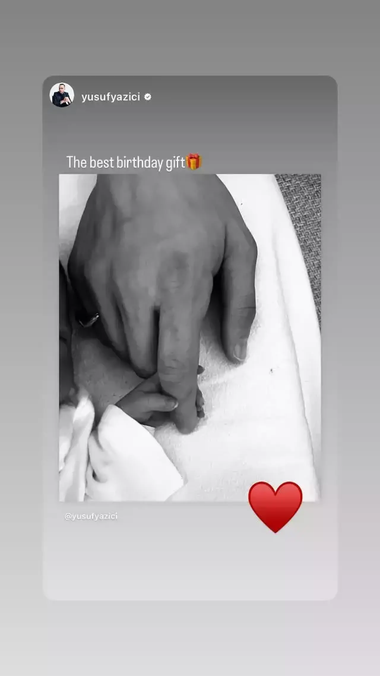 Bebeğin doğumunun Yusuf Yazıcı’nın doğum günüyle aynı güne denk gelmesi , aile için unutulmaz bir tesadüf oldu. Bu durum, hem Melisa Aslı Pamuk hem de Yusuf Yazıcı için hayatlarının en özel günlerinden biri haline geldi. Çift, sosyal medyada yaptığı paylaşımda, “En güzel doğum günü hediyesi oldu ” ifadelerini kullanarak mutluluklarını dile getirdi.