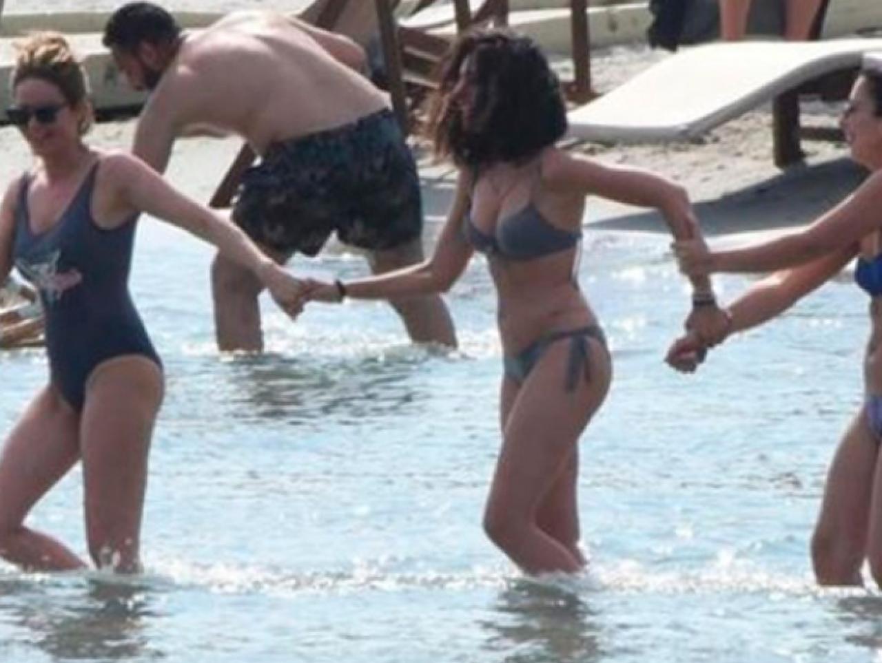 Uzun süre güneşlenen Melisa Aslı Pamuk, sonunda Şermin Özyakup’un ısrarıyla şezlongundan kalktı.