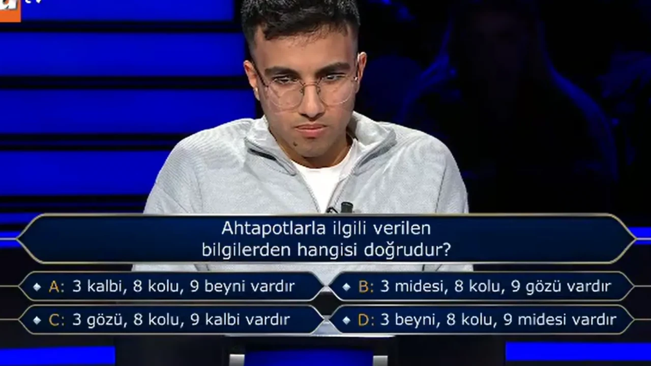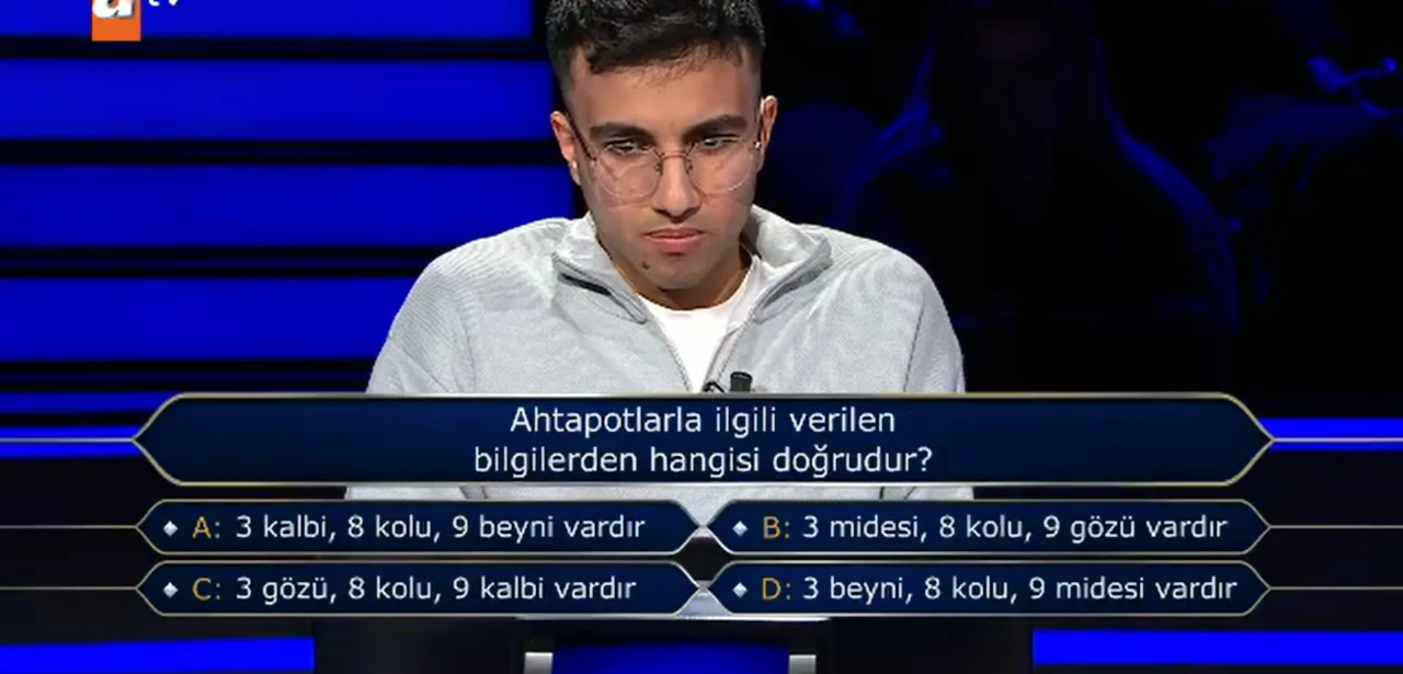 Doğru Cevap: A Şıkkı – 3 Kalbi, 8 Kolu, 9 Beyni Vardır