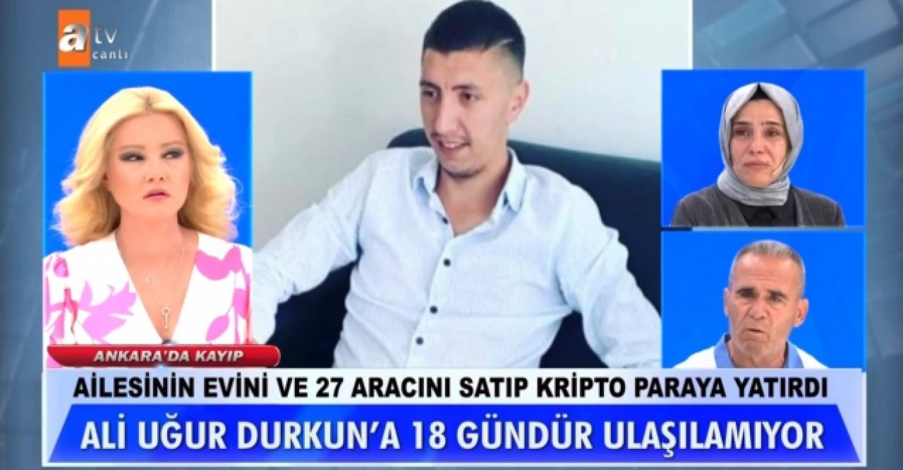 Bugün annesi ve babasının gözyaşlarıyla canlı yayına katıldığı Ali Uğur Durkun'dan 23 Mayıs'tan itibaren haber alınamıyor. Ailesini beş parasız bırakan genç en son olarak kuzenine mesaj attı ve karşılarına çıkamayacağını söyledi. Diğer yandan annesi ve babası üzerlerine borç kaldığını dile getirerek onları ödediklerini dile getirdi. Ölü ya da sağ olduğu araştırılıyor. Durkun'un 2 milyon liralık evli 900 bin liraya sattığı öğrenildi.