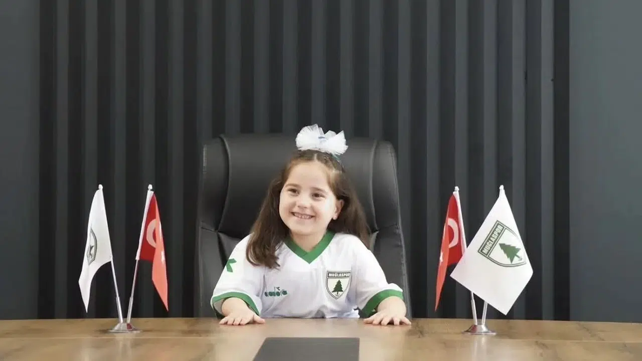 Muğlaspor Kulübü’nde 23 Nisan Ulusal Egemenlik ve Çocuk Bayramı nedeniyle renkli anlar yaşandı; başkanlık koltuğuna oturan minik Yağmur Tağ, taraftarı şampiyonluk yolunda birlik olmaya çağırdı.