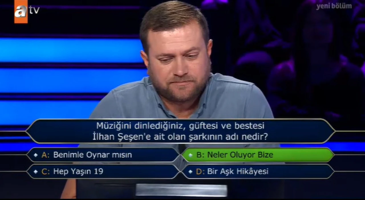 Türkiye’nin en çok izlenen bilgi yarışmalarından biri olan Kim Milyoner Olmak İster, yine ilginç bir soruyla ekran başındakilere unutulmaz anlar yaşattı. Yarışmacıya sorulan soru, ünlü sanatçı İlhan Şeşen’in efsaneleşmiş şarkılarından birine odaklanıyordu. Yarışmacının karşısına çıkan şıklar arasında “Benimle Oynar Mısın?”, “Neler Oluyor Bize”, “Hep Yaşın 19” ve “Bir Aşk Hikayesi” yer aldı.