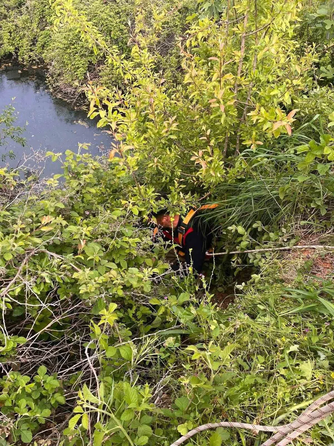 Bozlu Mahallesi'nde yaşanan olayda, otladığı sırada dengesini kaybederek yaklaşık 10 metre derinliğindeki su göletine yuvarlanan büyükbaş hayvan, kendi çabalarıyla çıkamayınca bölgede panik yaşandı. Hayvanın kurtarılması için çaresiz kalan vatandaşlar, durumu hemen Hatay Büyükşehir Belediyesi itfaiye ekiplerine bildirdi.