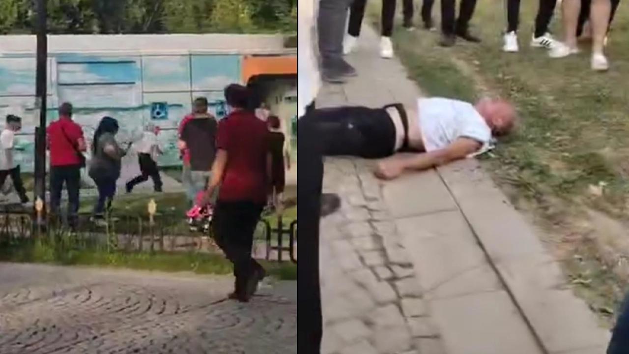Ardından yakalan şahıs çevredekiler tarafından meydan dayağı yedi. Darbeler sonucu yere yığılan şüphelinin etrafında kalabalık toplandı ve küçük çocuğu taciz eden şahsa tepki gösterdi.