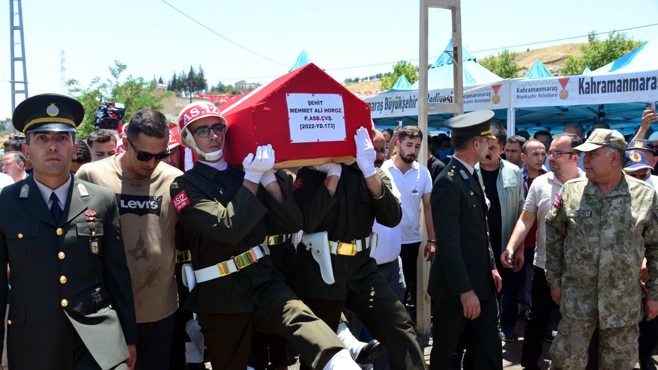 TSK'ya 2 yıl önce katılan ve teröristlerle girilen çatışmada şehit olan Piyade Astsubay Çavuş Mehmet Ali Horoz'un cenazesi hastane morgundan alınıp Hasancıklı Mahallesi'ndeki baba ocağına götürüldü. Burada dua edilip helallik alındıktan sonra şehidin cenazesi, tören için Şeyh Ali Sezai Efendi Mezarlığı'na getirildi. Törene; şehidin ailesinin yanı sıra Kahramanmaraş Valisi Mükerrem Ünlüer, Tarım ve Orman Bakan Yardımcısı Abdulkadir Polat, milletvekilleri, 6'ncı Kolordu Komutanı Tümgeneral Mehmet Özeren, 2'nci Zırhlı Tugay Komutanı Tuğgeneral Emin Mehmet Terzioğlu, Büyükşehir Belediye Başkanı Fırat Görgel, askeri ve mülki erkan ile vatandaşlar katıldı. Törende şehidin kardeşleri tabuta sarılıp gözyaşı döktü.