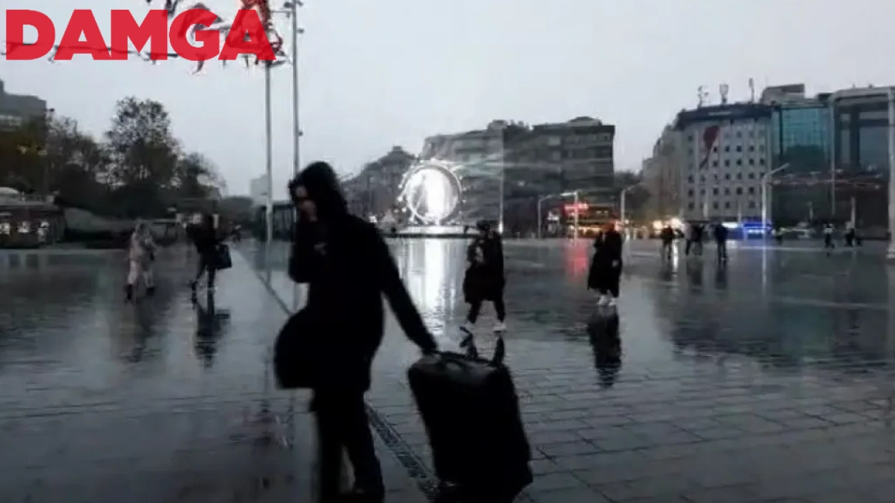 İstanbul'da Meteoroloji Genel Müdürlüğü’nün sağanak yağış ve fırtına uyarılarının ardından, beklenen yağış etkisini göstermeye başladı. Özellikle Taksim Meydanı’nda aniden bastıran sağanak, hem turistleri hem de vatandaşları hazırlıksız yakaladı. Yağış sırasında etkisini artıran lodos nedeniyle vatandaşlar yürümekte büyük zorluklar yaşarken, meydanda ilginç görüntüler ortaya çıktı.