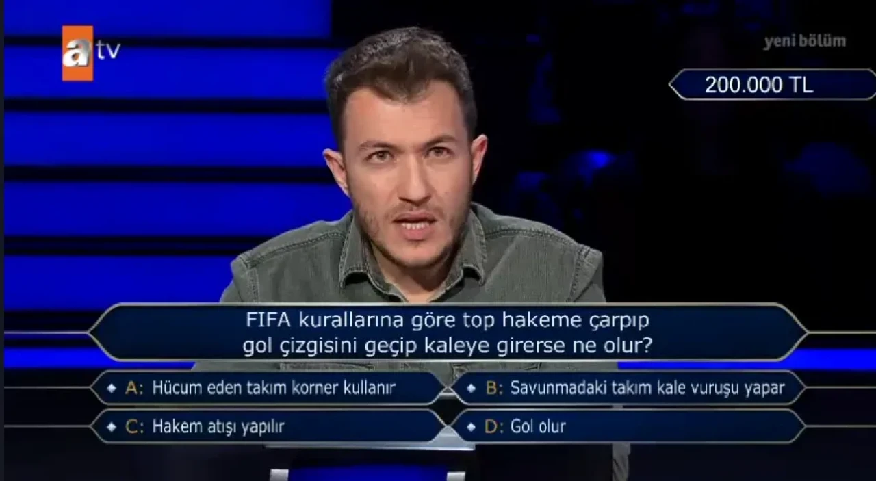 Soru: FIFA kurallarına göre top hakeme çarpıp gol çizgisini geçip kaleye girerse ne olur?