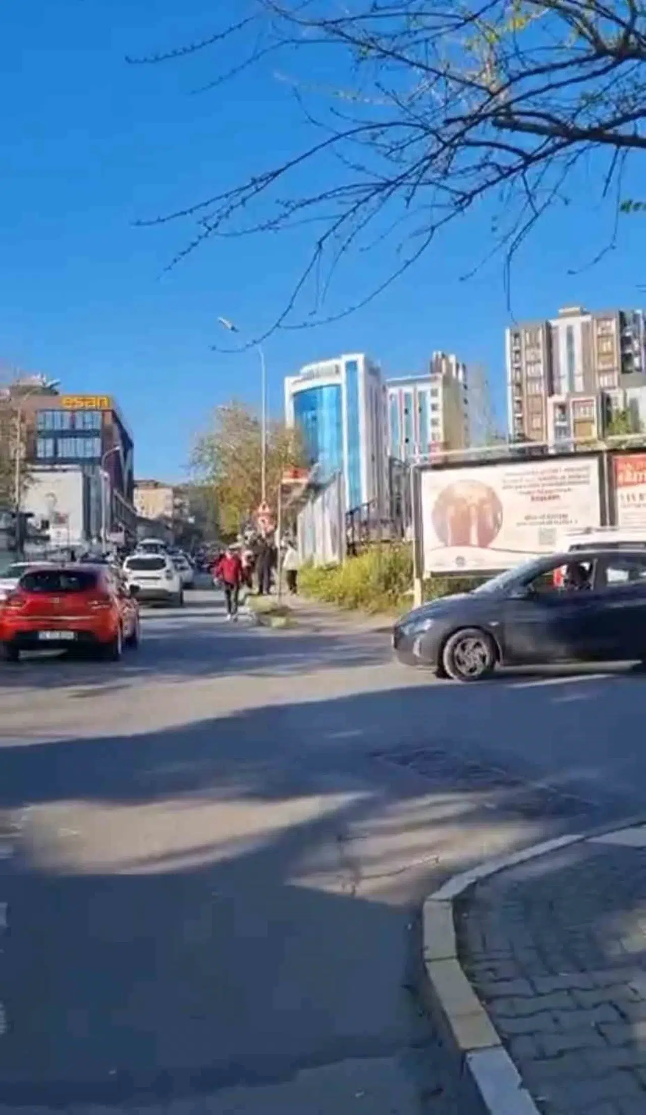 Olay yerinde güvenlik güçlerini beklemek yerine eşini ve arkadaşlarını arayan kadın sürücü, kısa süre sonra gelen 4 kişilik grubun saldırısına zemin hazırladı. Görüntülere yansıyan anlarda, olay yerine gelen saldırganların küfürler savurarak motosiklet sürücüsünün üzerine yürüdüğü görüldü.