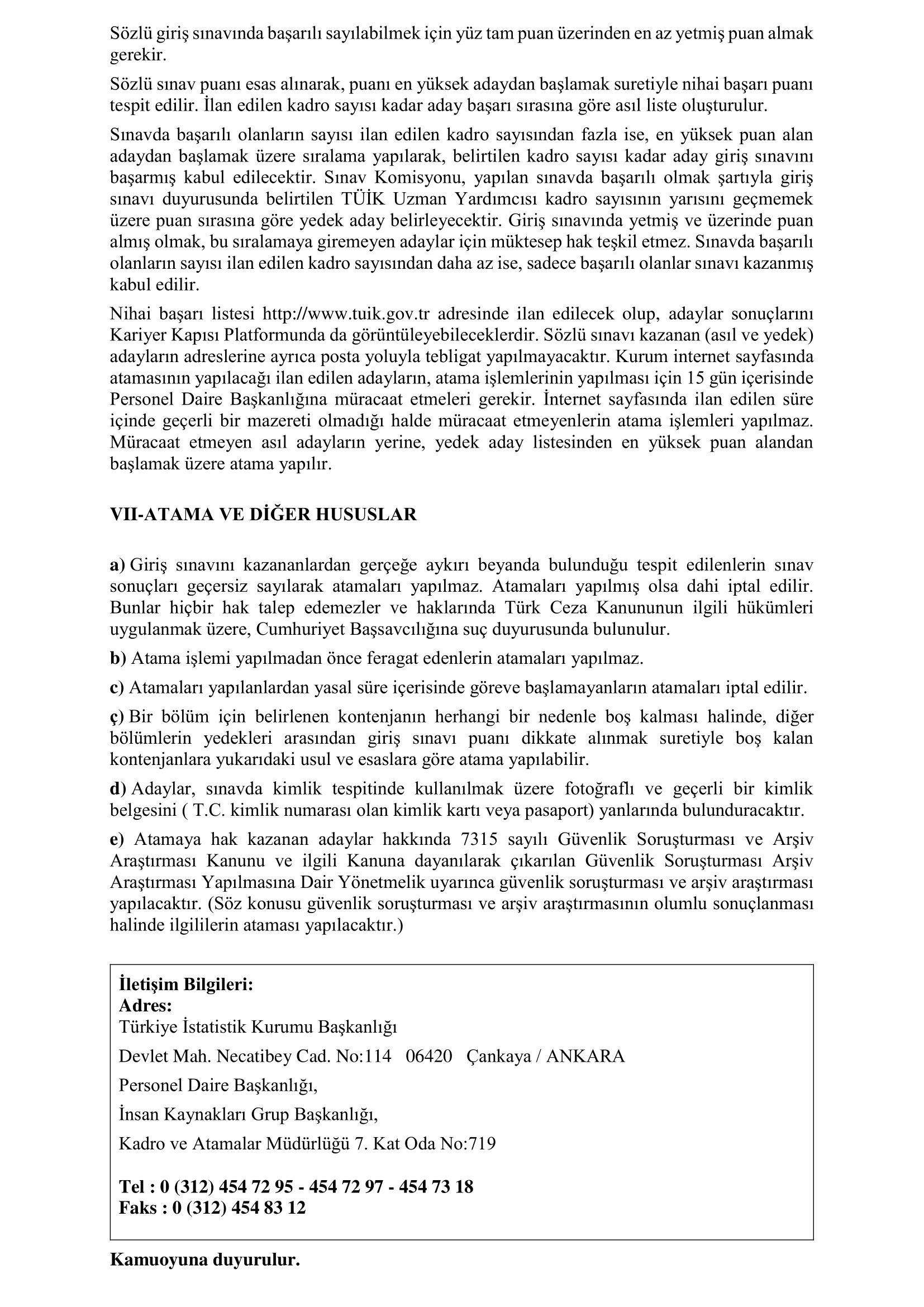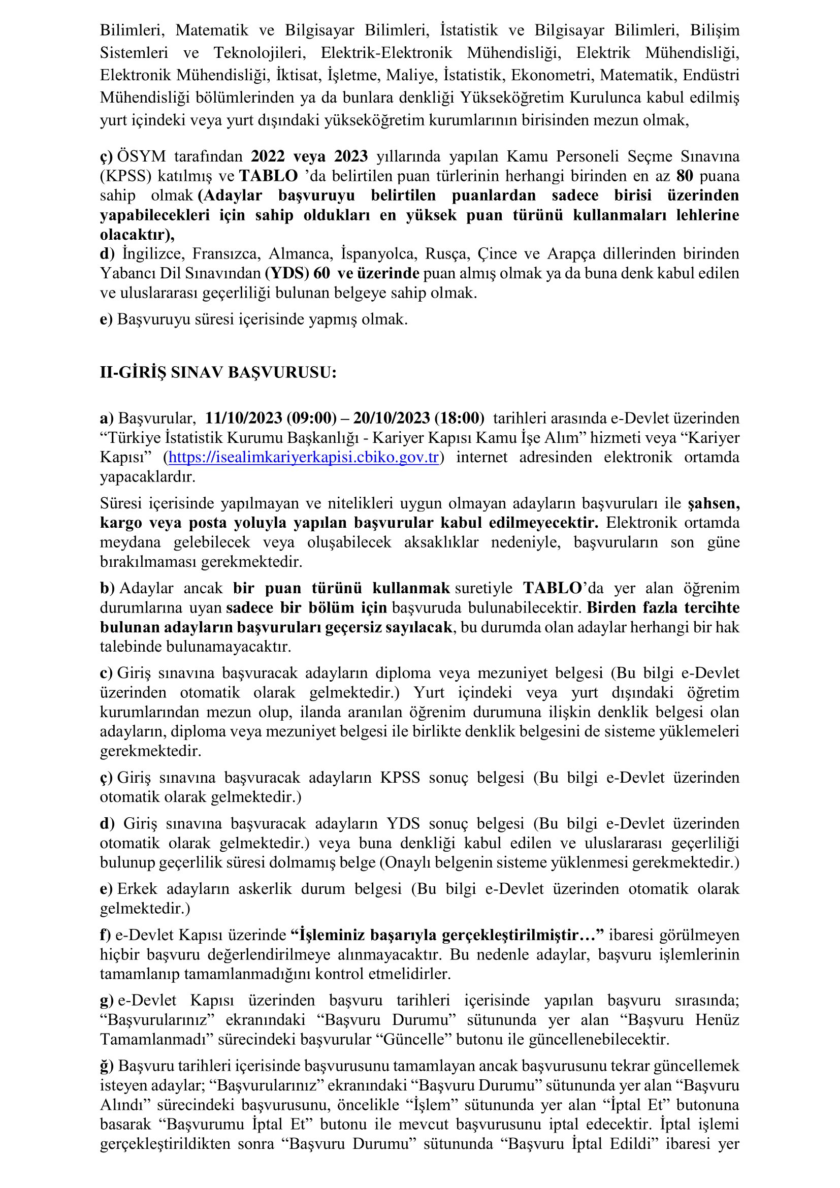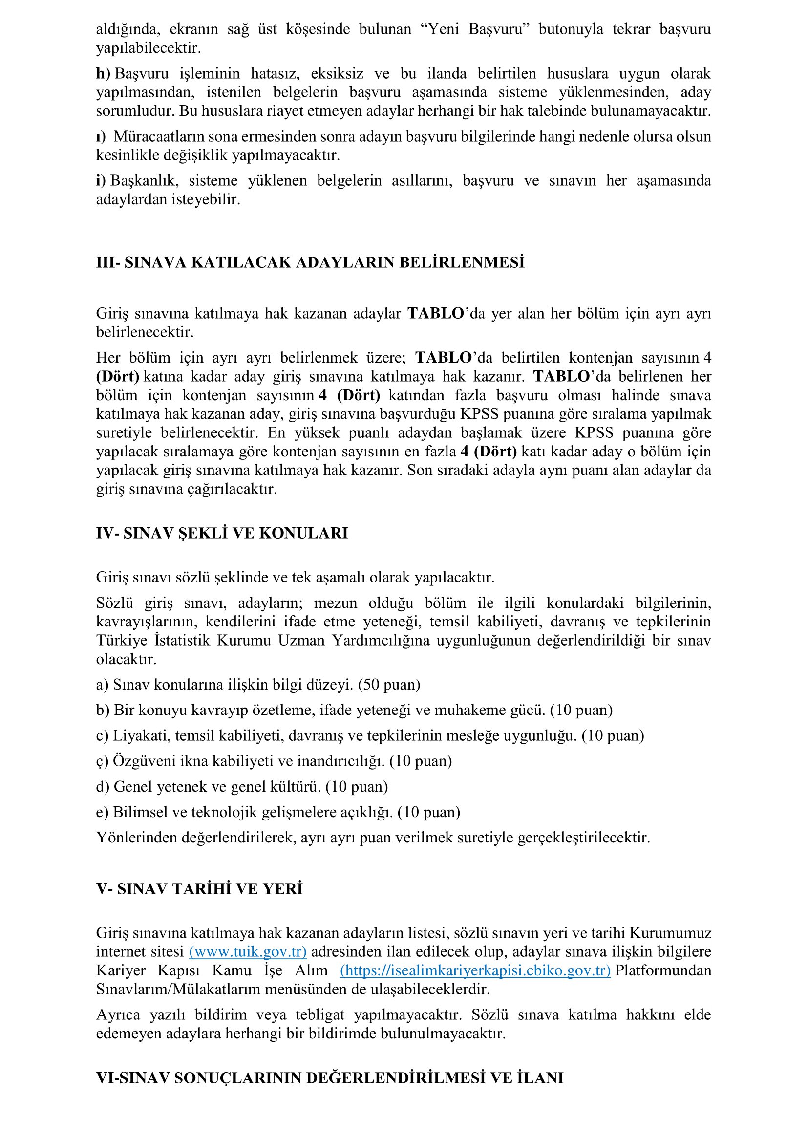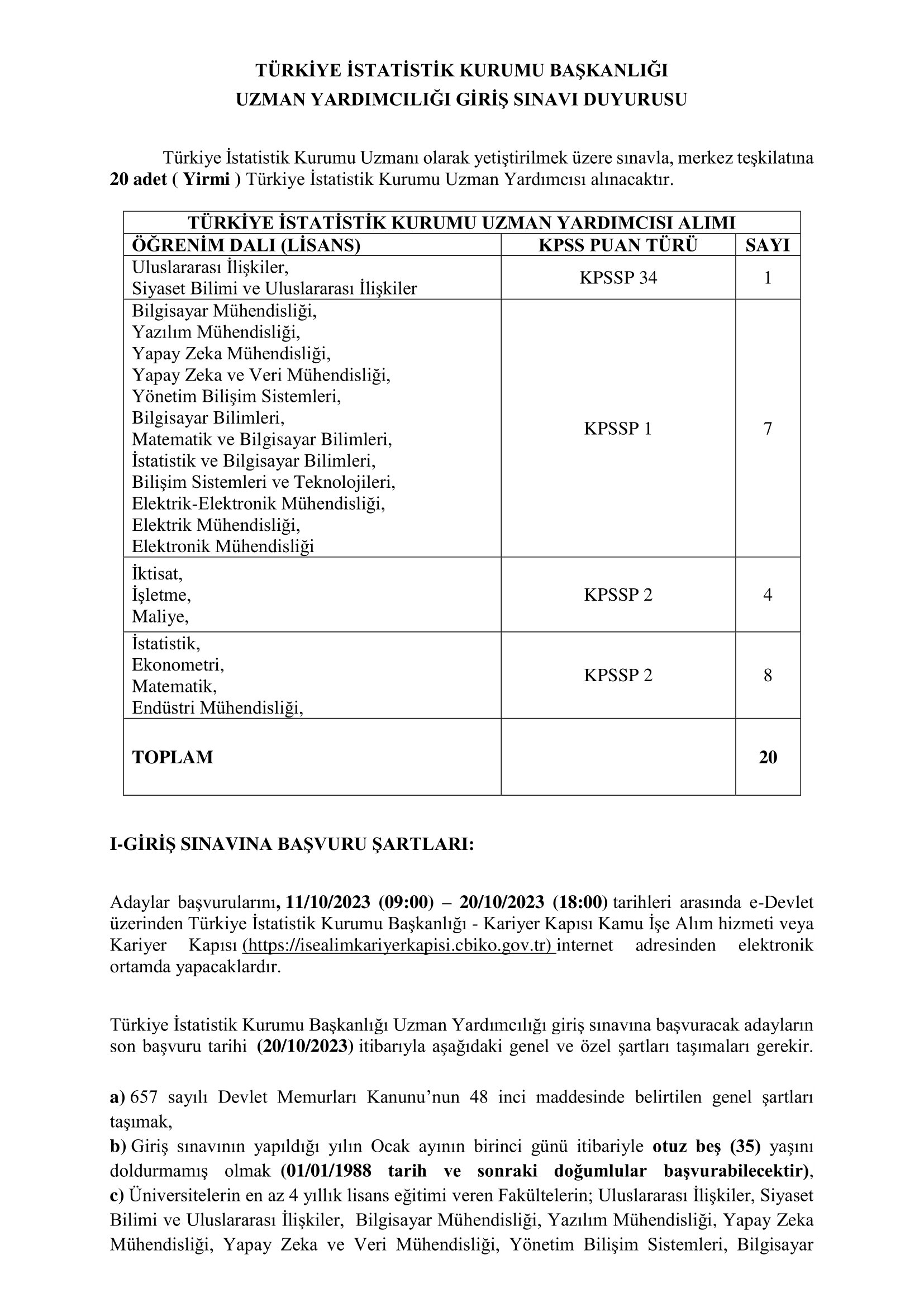 Türkiye İstatistik Kurumu Başkanlığı 20 adet uzman yardımcı alacak. Başvurular 11 - 20 Ekim tarihleri arasında yapılacak.