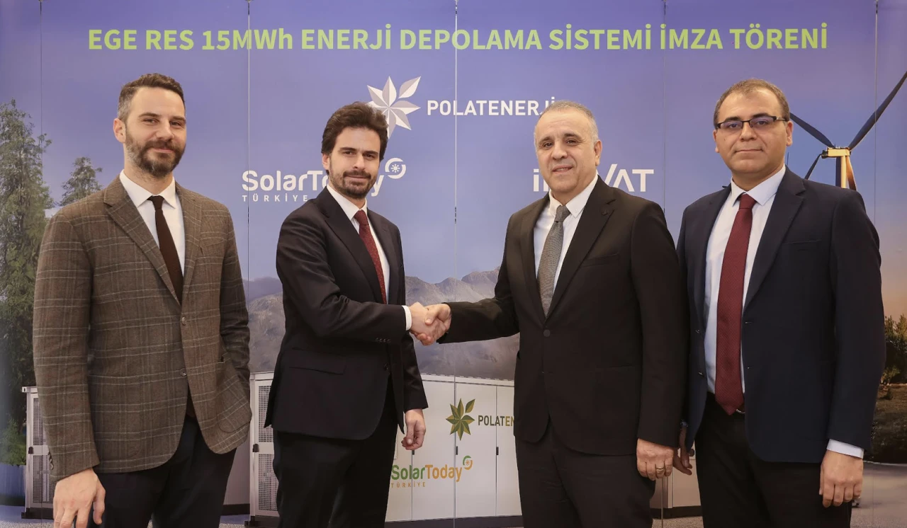 Polat Enerji’ye ait kurulu gücü 15,2 MWh olan Ege Rüzgar Enerji Santrali’nde Depolamalı Kapasite Artışı için 2 Ocak Perşembe günü Polat Enerji CEO’su Cem Deniz, SolarToday Türkiye CEO’su Mario Dalsarfati ve iNOVAT Enerji Depolama Çözümleri Yönetici Ortağı Can Tokcan’ın katılımıyla Polat Enerji Genel Müdürlüğü’nde bir imza töreni gerçekleştirildi.