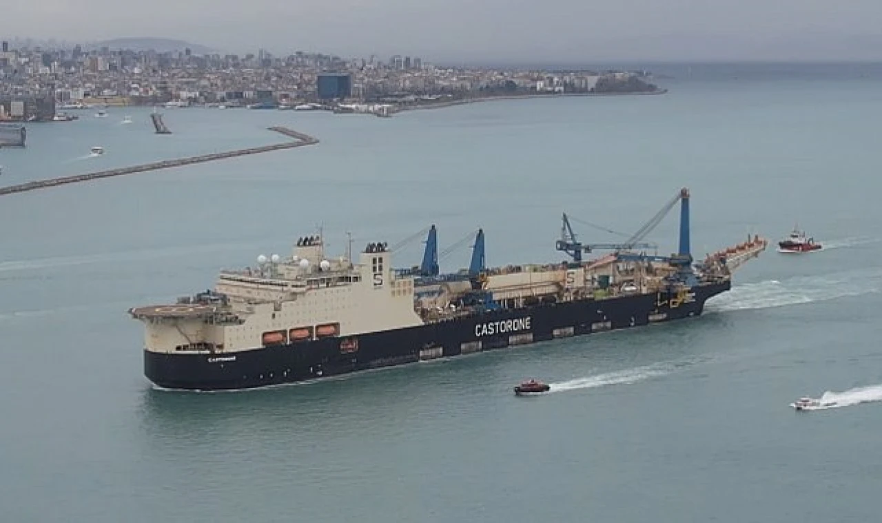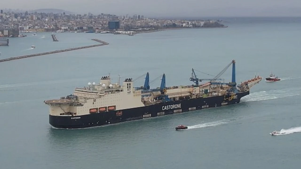 Türkiye'nin Karadeniz'deki doğal gaz keşfi için boru döşeyecek olan "Castorone" adlı dev gemi, İstanbul Boğazı'ndan başarıyla geçti.