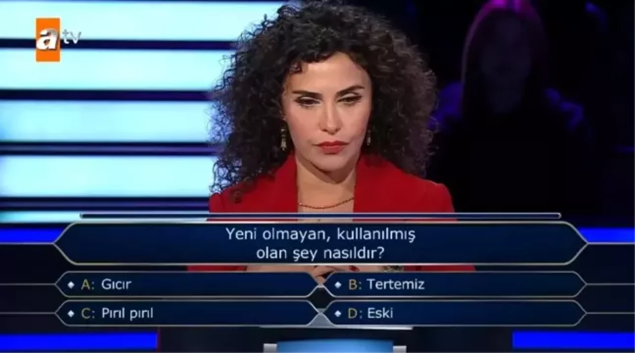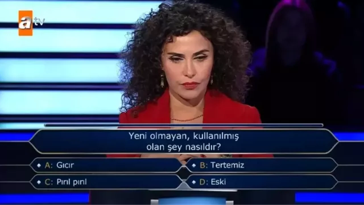 ATV ekranlarının sevilen bilgi yarışması Kim Milyoner Olmak İster, her hafta yeni bölümleriyle izleyicileri ekran başına kilitlemeye devam ediyor. Yarışmanın son bölümünde sorulan, oldukça basit gibi görünen ancak dikkat gerektiren bir soru, hem yarışmacıyı hem de ekran başındaki izleyicileri düşündürdü: "Yeni olmayan, kullanılmış olan şey nasıldır?" İşte bu ilginç sorunun şıkları, doğru cevabı ve detayları…