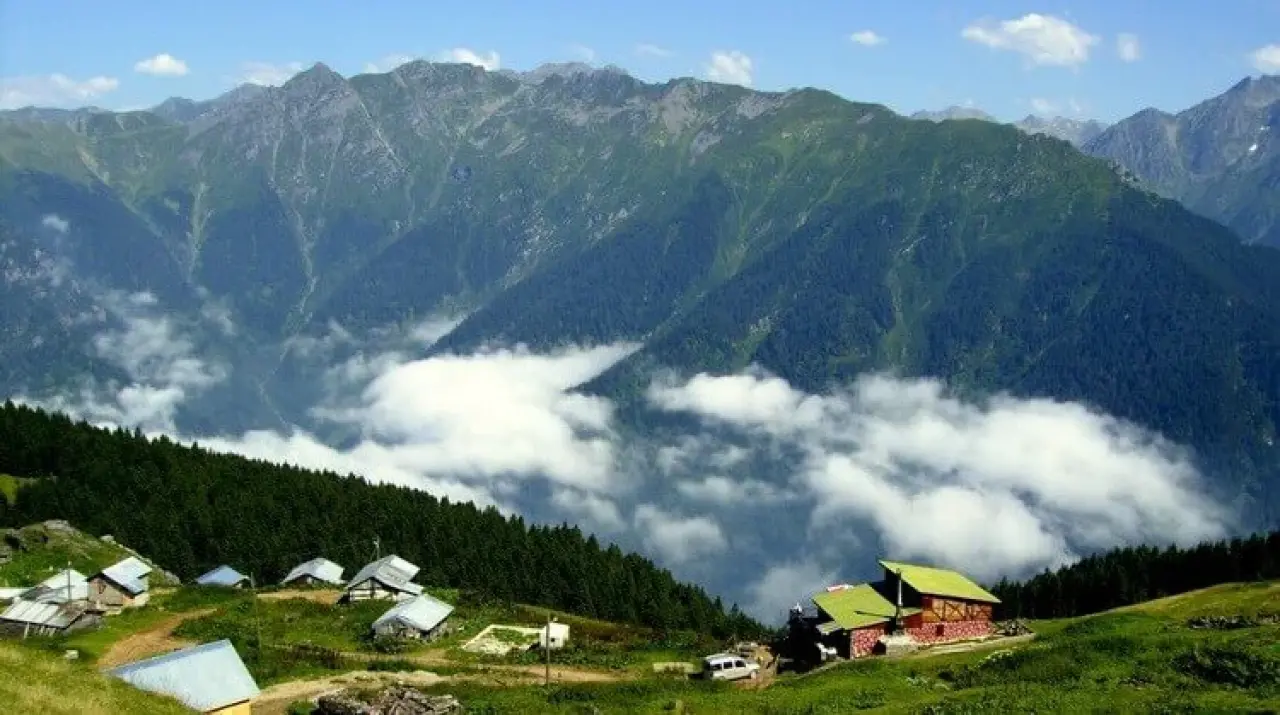 Beyaz kar, yemyeşil ormanlarla buluşur,