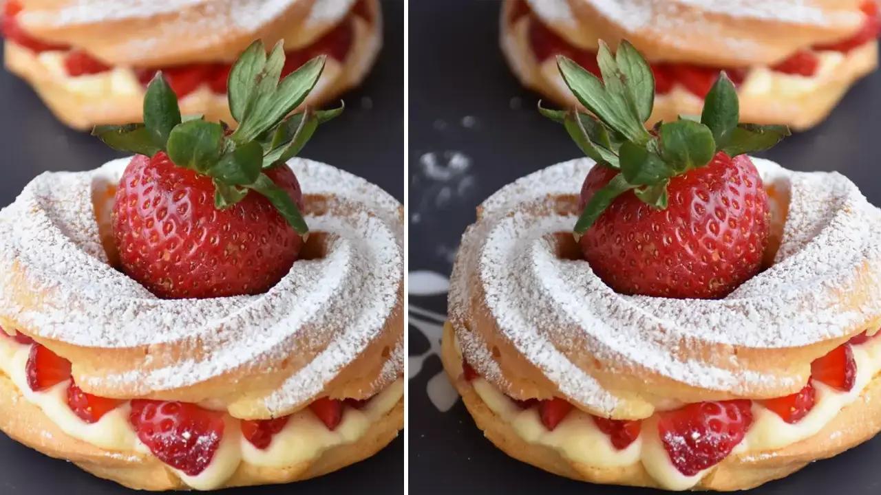Hamurlar fırından çıktıktan bir-iki dakika sonra (içlerinde nem birikmesini önlemek için) enlemesine kesilir ve açık biçimde soğumaya bırakılır. Önceden hazırlanan kremayla doldurulur ve arasına arzu edilen meyveler eklenip, üstüne de pudra şekeri serperek servis edilir.