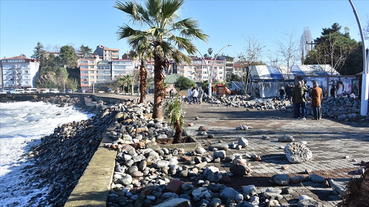 Giresun'un Karadeniz sahilindeki ilçesi Tirebolu'da, fırtına nedeniyle oluşan dev dalgaların yol açtığı hasarın giderilmesi için çalışmalar sürüyor.