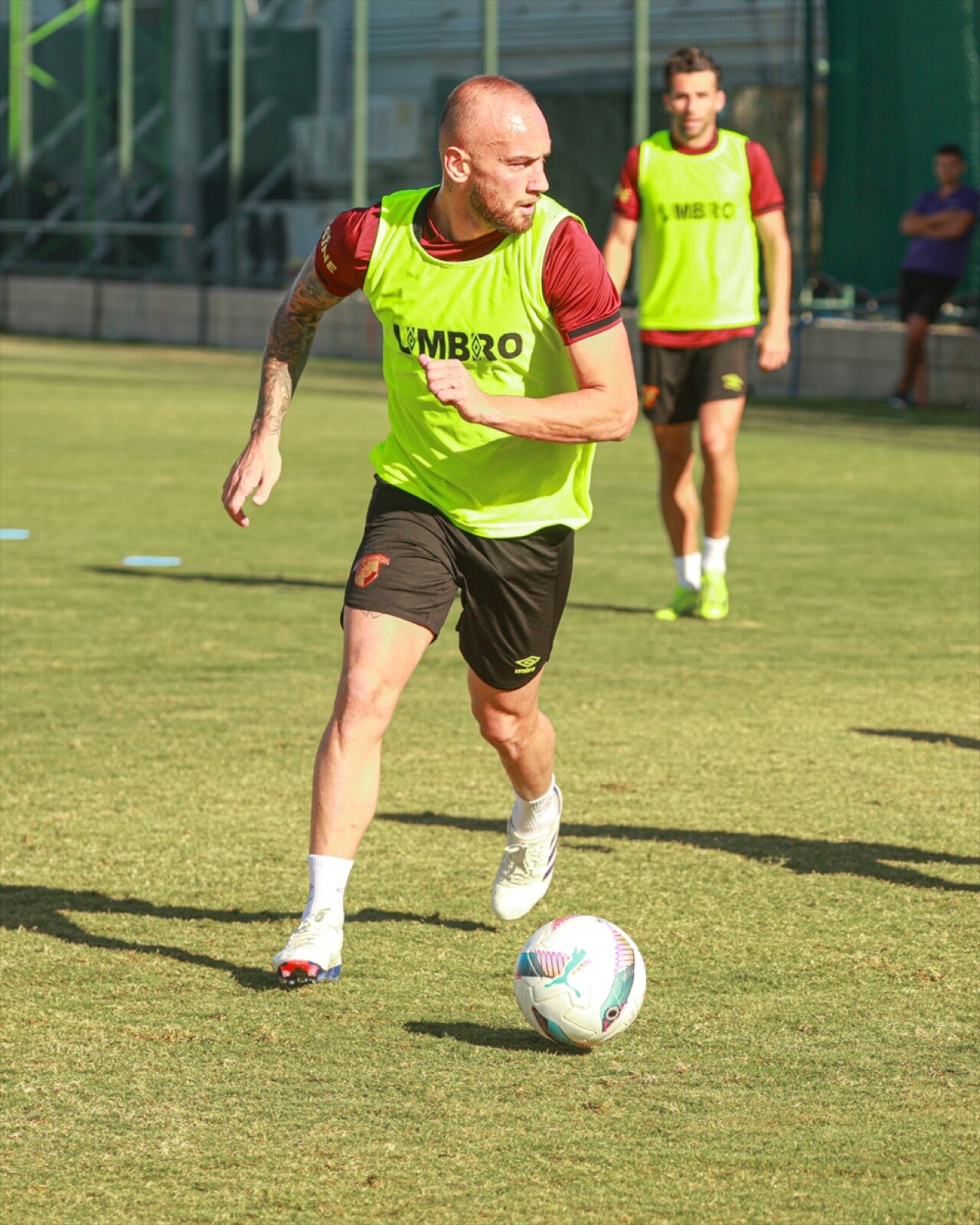 Akşam idmanının ilk bölümünde 5'e 2 pas ve top kapma çalışması yapan sarı-kırmızılı futbolcular, ikinci bölümde taktik çalıştı.