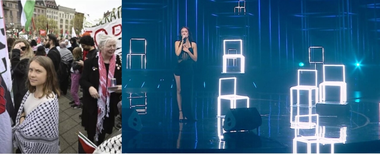 Öte yandan İsrailli şarkıcı Eden Golan, binlerce kişinin yarışmaya dahil edilmesini protesto etmesinden saatler sonra Perşembe gecesi Eurovision finaline yükseldi. Aynı zamanda İsrail'in Gazze'de Hamas'a karşı savaşı da devam ediyor.