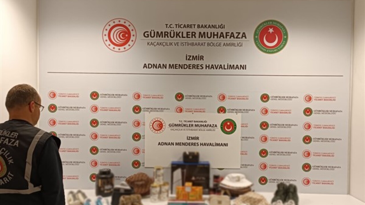 İzmir Adnan Menderes Havalimanı’nda toplam 8 kalemde 562 adet farklı marka ve modellerde elektronik sigara tütünü, şapka, ayakkabı, parfüm, oyun konsolu, projektör, gıda takviyesi, hayvan tarağı gibi eşyalardan oluşan ait yaklaşık 10 milyon Türk lirası değerinde muhtelif eşyaya el konuldu.