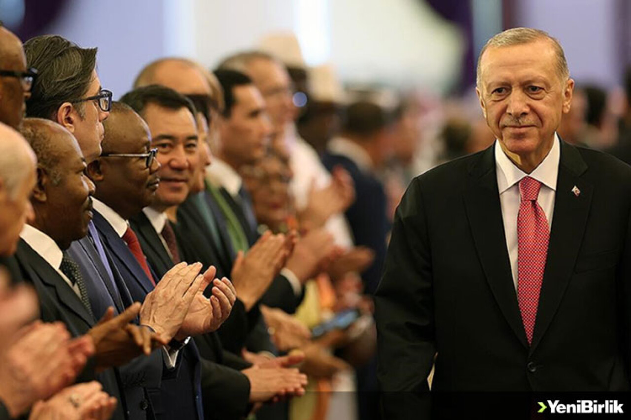 Cumhurbaşkanı Seçimi'nin, rakibine fark atmasına rağmen, ilk turda yüzde 50 artı 1 şartının aranması sebebiyle ikinci tura kaldığını hatırlatan Erdoğan, "28 Mayıs'ta milletimiz, 0,50 oy oranıyla yarım bıraktığı işi tamamlamak için yeniden sandıklara gitti. İlk tur seçimlerinde katılım oranımız yüzde 87'yi aşmıştı. İkinci turda da yine yüzde 85'i bulan rekor bir katılım seviyesine ulaştık." dedi.