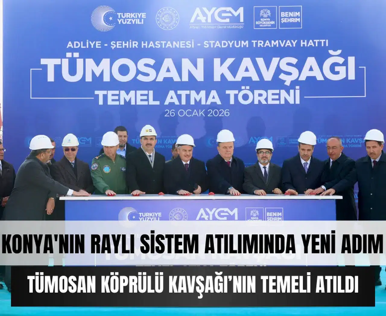 Törene katılan AK Parti Konya Milletvekili Mehmet Baykan, temel atmama törenlerinin yapıldığı bir dönemde gerçek projelerin hayata geçmesinin önemine dikkat çekti. Vali İbrahim Akın ise projenin sanayi, sağlık ve şehir merkezi ulaşımını entegre eden stratejik bir hamle olduğunu belirterek, Konya’nın ulaşımda geleceği planlayan şehirlerden biri haline geldiğini vurguladı. Temel atma törenine askeri ve sivil protokol üyeleri, belediye başkanları ve çok sayıda davetli katıldı. Yapılan dualarla birlikte TÜMOSAN Köprülü Kavşağı’nın temeli atıldı.