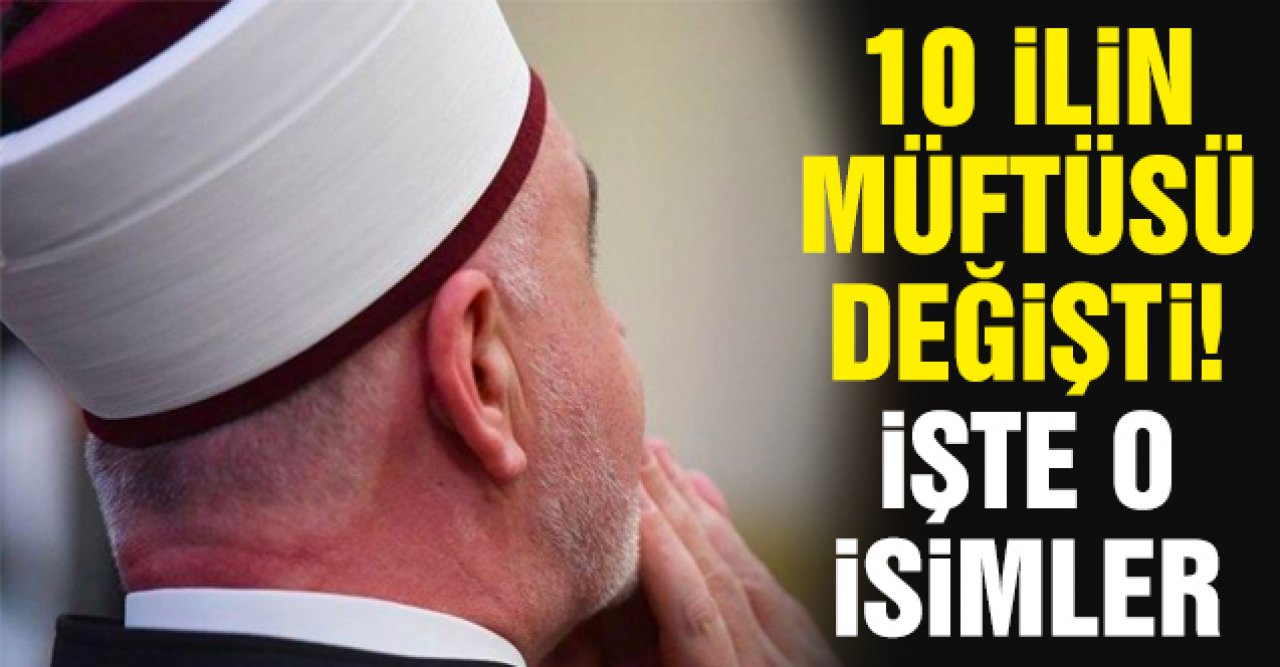 Cumhurbaşkanı Atama Kararları Resmi Gazete yayımlandı. Kararda Bartın'ın müftüsü görevden alınırken 10 ilin müftüsü değişti. Resmi Gazete'de yer alan atama kararlarına göre, Bartın Müftülüğü'ne Van Müftüsü Ömer Keskin, Van Müftülüğü'ne Gümüşhane Müftüsü Mehmet Sırrı Şık, Gümüşhane Müftülüğü'ne Hüseyin Gün, Ankara Müftülüğü'ne Adana Müftüsü Hasan Çınar, Adana Müftülüğü'ne Adıyaman Müftüsü Mehmet Taşcı, Adıyaman Müftülüğü'ne Şırnak Müftüsü Mehmet Taştan, Şırnak Müftülüğü'ne Ahmet Dilek, Mersin Müftülüğü'ne Kırklareli Müftüsü Aydın Yığman, Kırklareli Müftülüğü'ne Kars Müftüsü Yusuf Eviş, Kars Müftülüğü'ne ise Hamza Bayram getirildi.