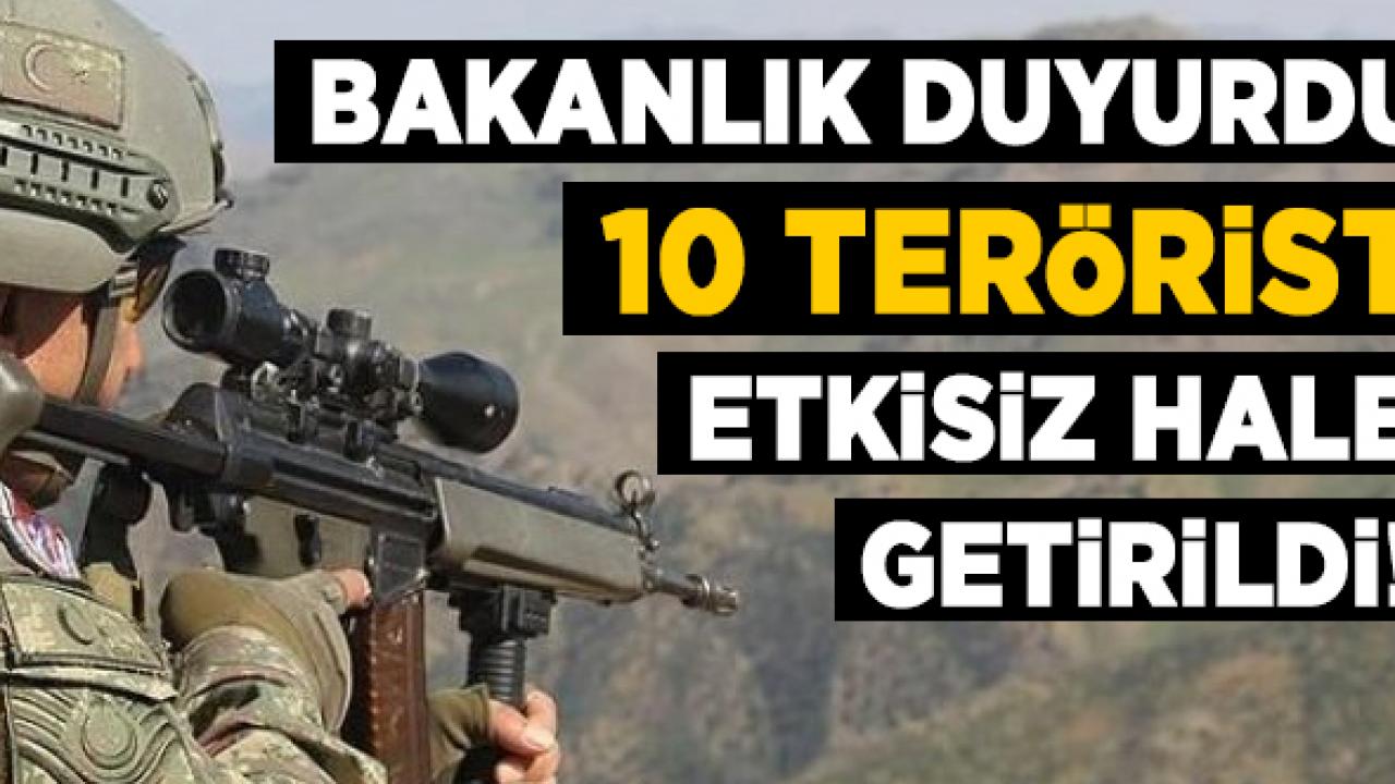Milli Savunma Bakanlığı 10 PKK/YPG’li teröristin etkisiz hale getirildiğini duyurdu.