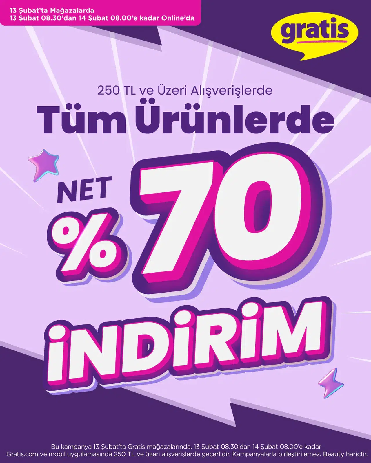13 Şubat Gratis indirimi bitti mi? Gratis 250 TL üzeri yüzde 70 indirim saat kaça kadar sürüyor? 14 Şubat’a kadar devam eden kampanyanın mağaza ve online detayları.