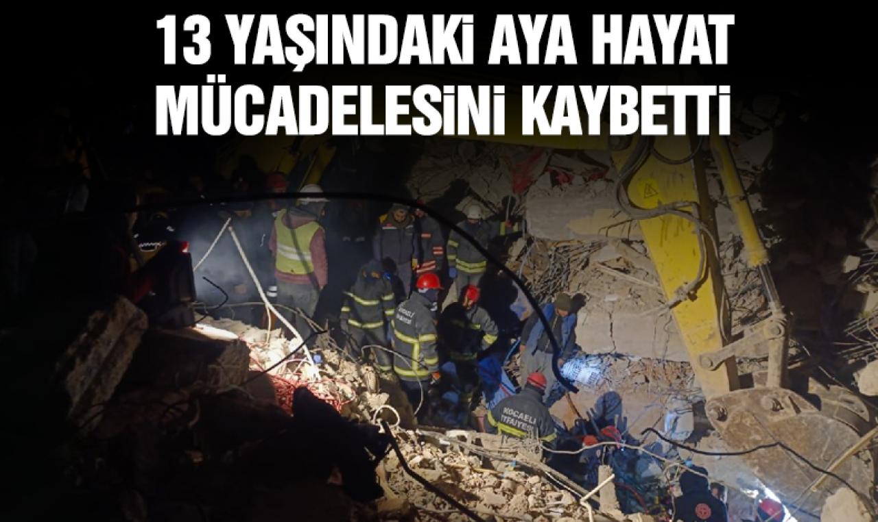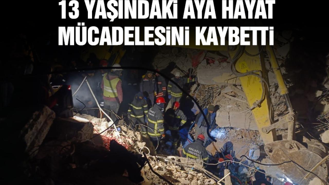 Hayati riski nedeniyle ayağının kesilmesine karar verilen Aya, birkaç dakika sonra sabah saat 07.00 sıralarında yaşamını yitirdi. Depremden yaklaşık 122 saat sonra Aya’nın yaşama veda etmesi onu kurtarmak için büyük çaba harcayan arama kurtarma görevlilerinde de büyük üzüntüye neden oldu. (DHA)